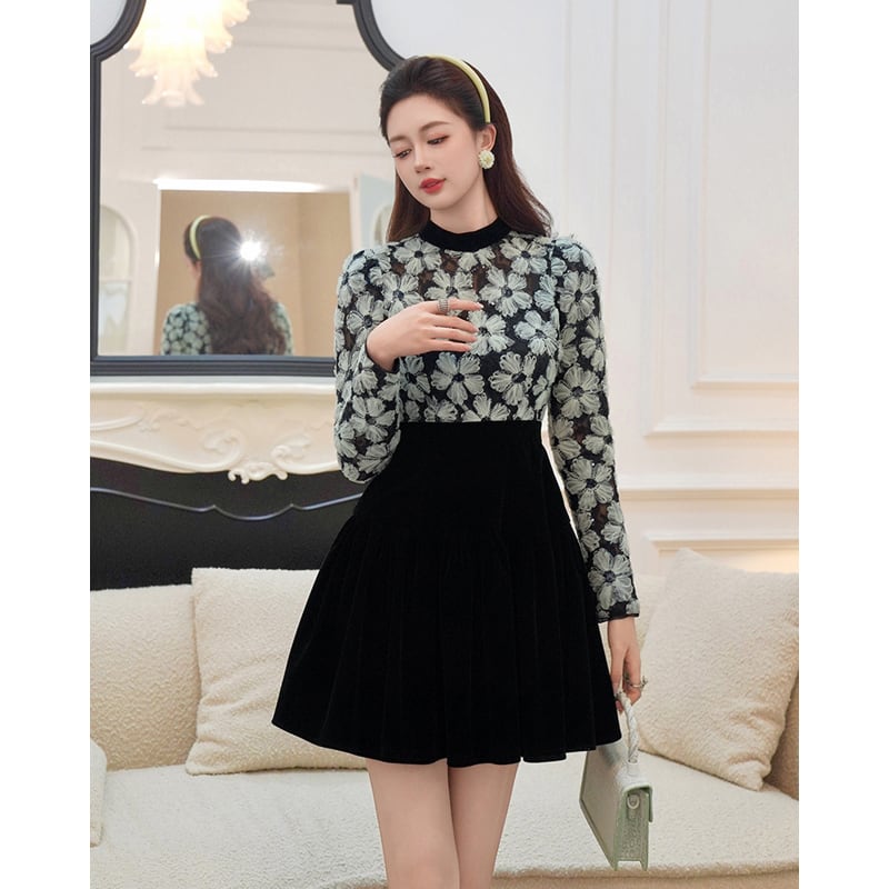 【夕暮薔薇シリーズ】ワンピース スパンコール デザイン感 ベルベット Aライン S M L XL