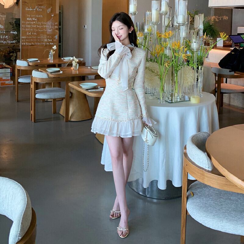 ワンピース リボン ツイード スウィート カラフル ペプラム S M L