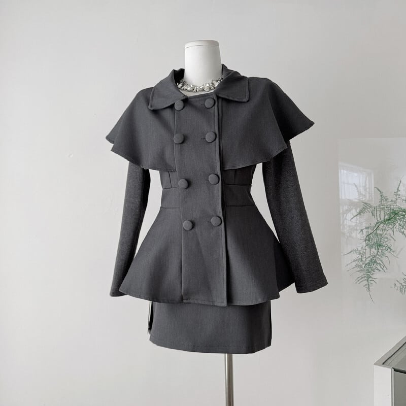 2点セットアップ ケープ風トップス+スカート お姫様風スタイル グレー S M L