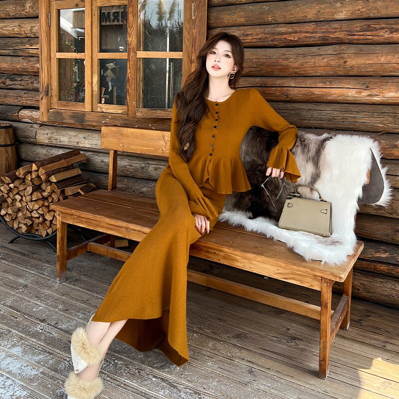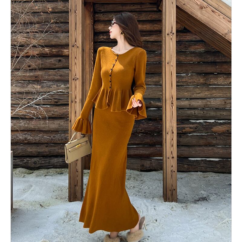 【CHERRYシリーズ】セットアップ ニット カーディガン+マーメイドスカート フレンチフリル S M L