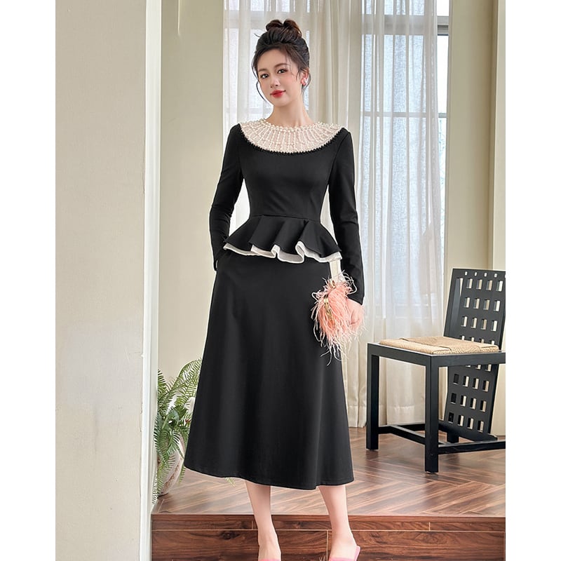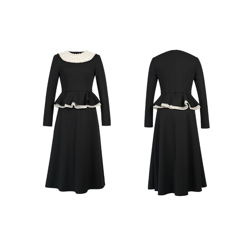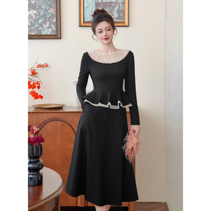 【夕暮薔薇シリーズ】ワンピース レトロ 気質満点 ペプラム ブラック S M L XL