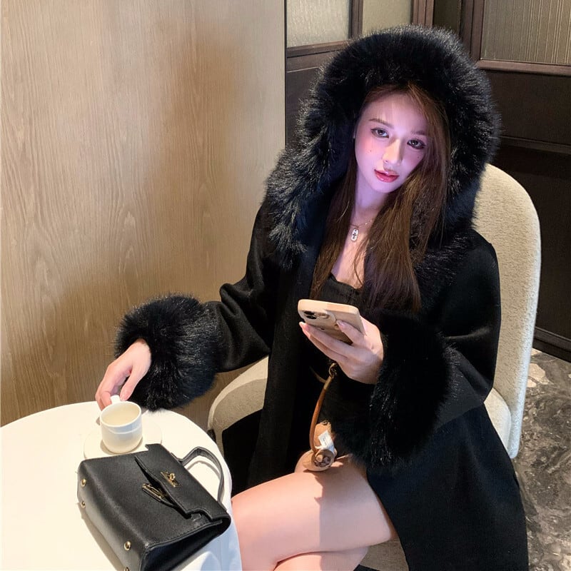 アウター フード付きコート モード トレンド ライトベージュ ブラック