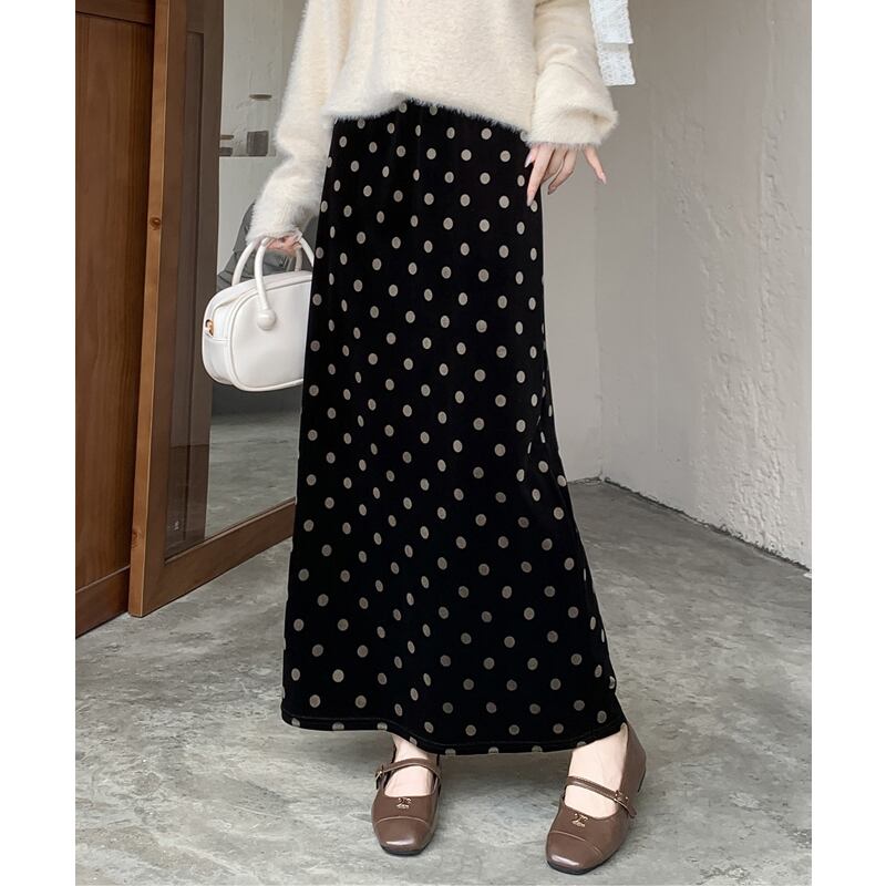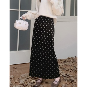 ボトムス スカート ベルベット ドット柄 バックスリット ブラック M L XL