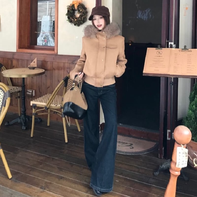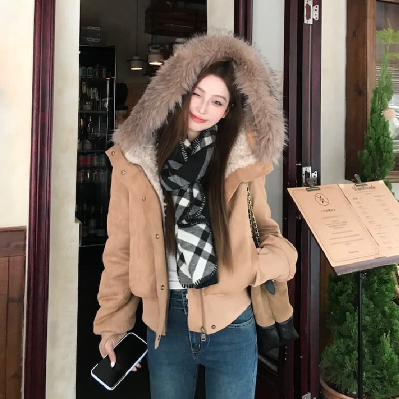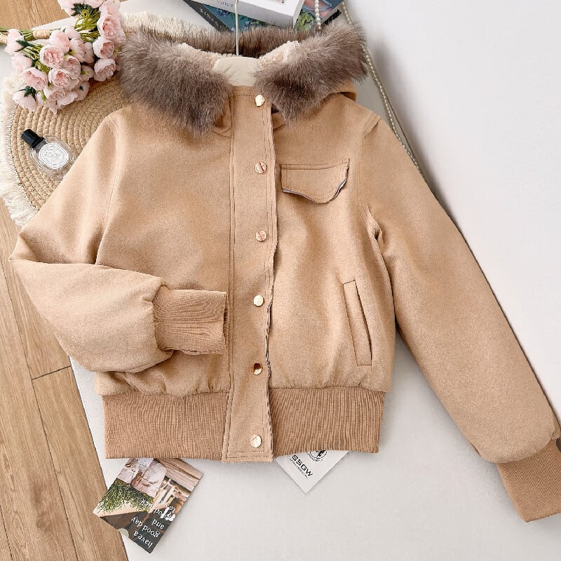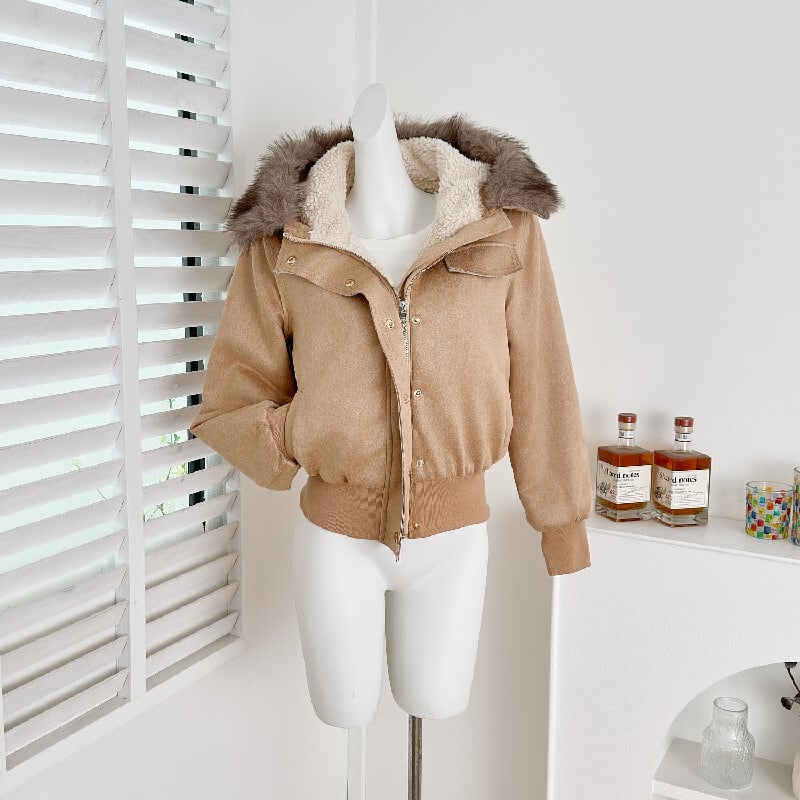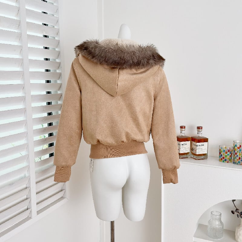 アウター スエード ファー付きフード ジャケット ライトブラウン S M L