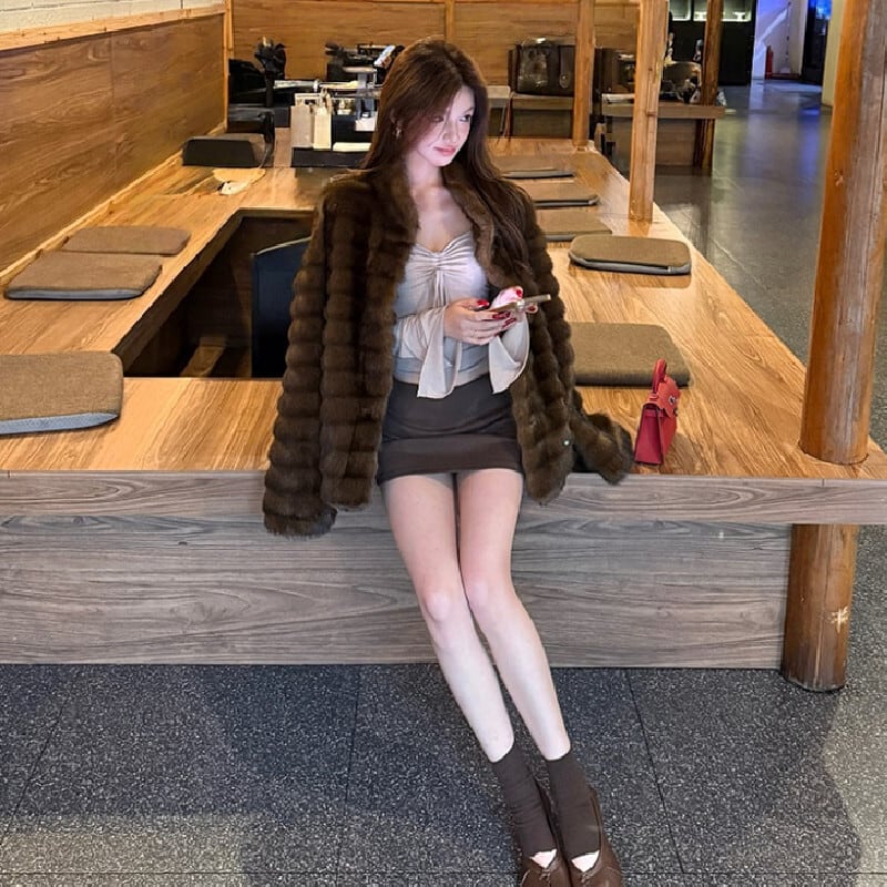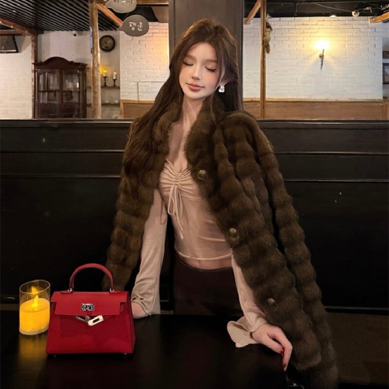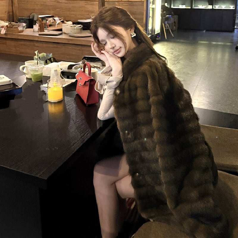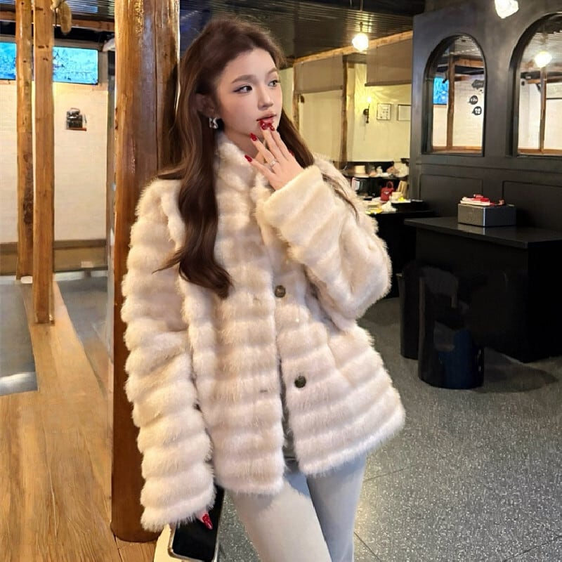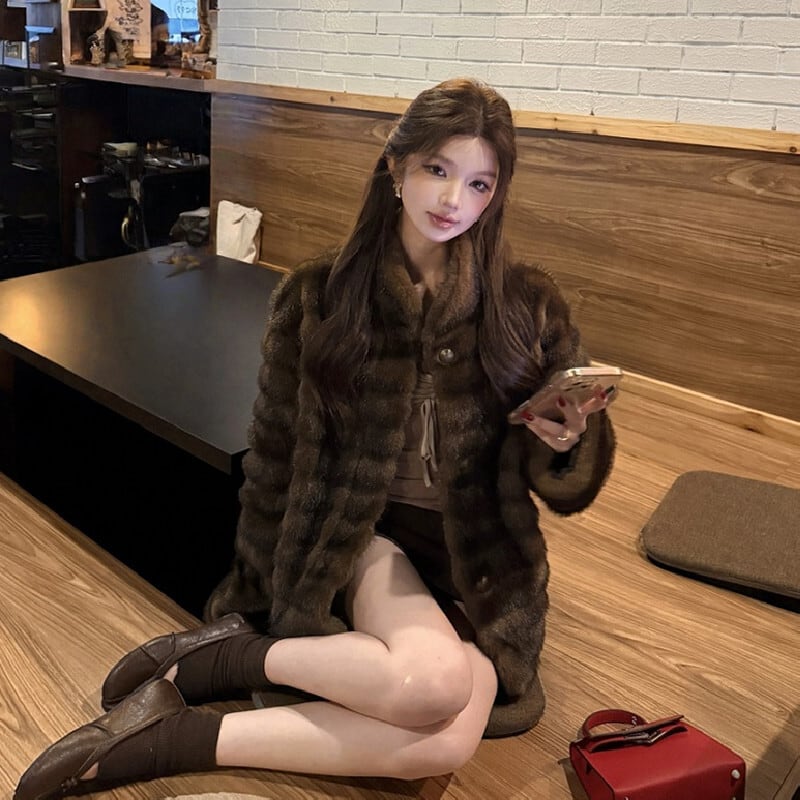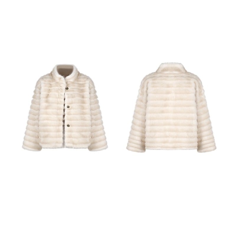 アウター 2色展開 フェイクファー ジャケット スタンドカラーデザイン コーヒー色 ベージュ S M