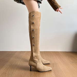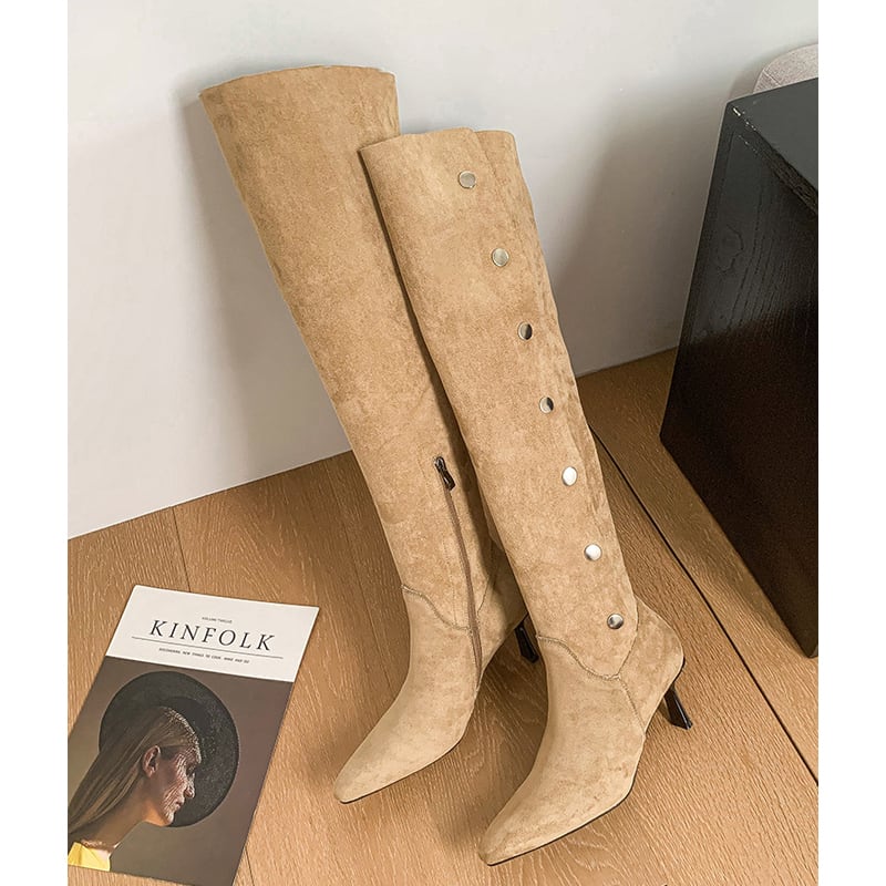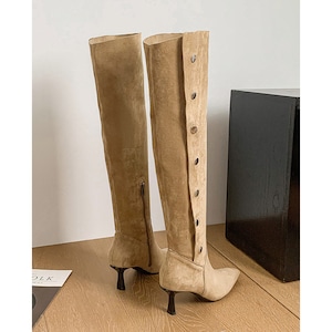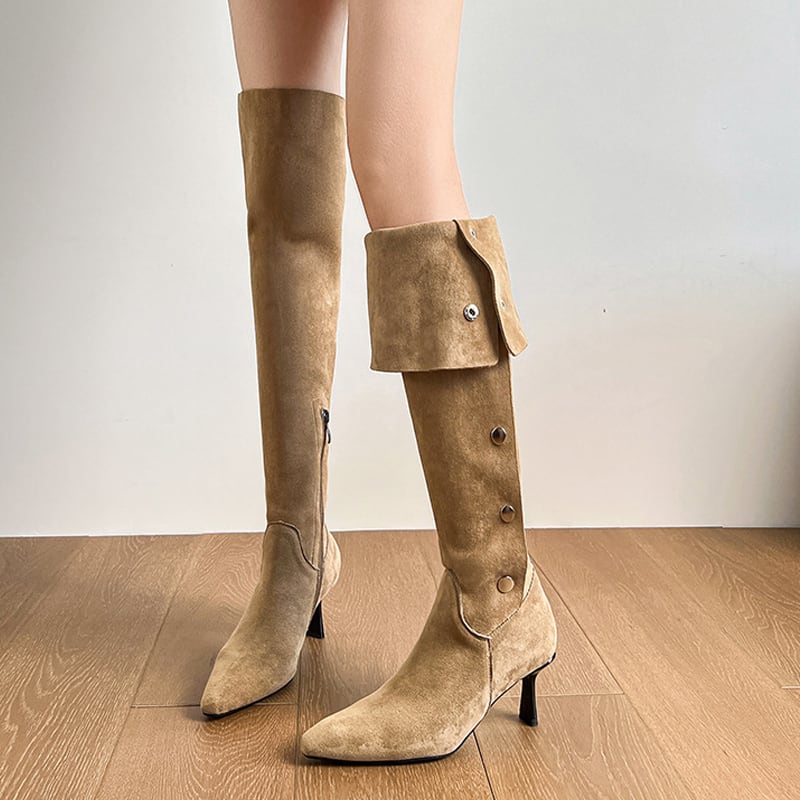 シューズ ロングブーツ ターンバック ライディングブーツ ダークベージュ 6CM