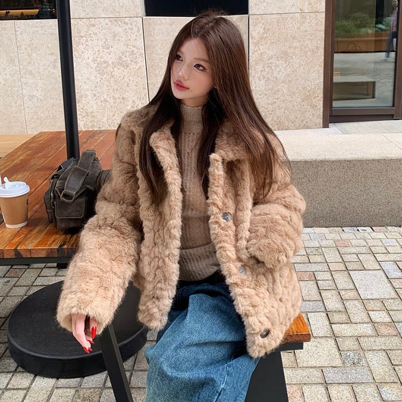 アウター フェイクファー モコモコ ジャケット お出かけコーデ S M L