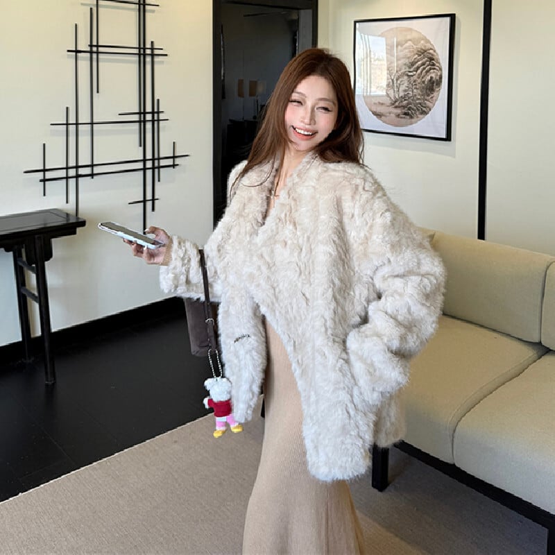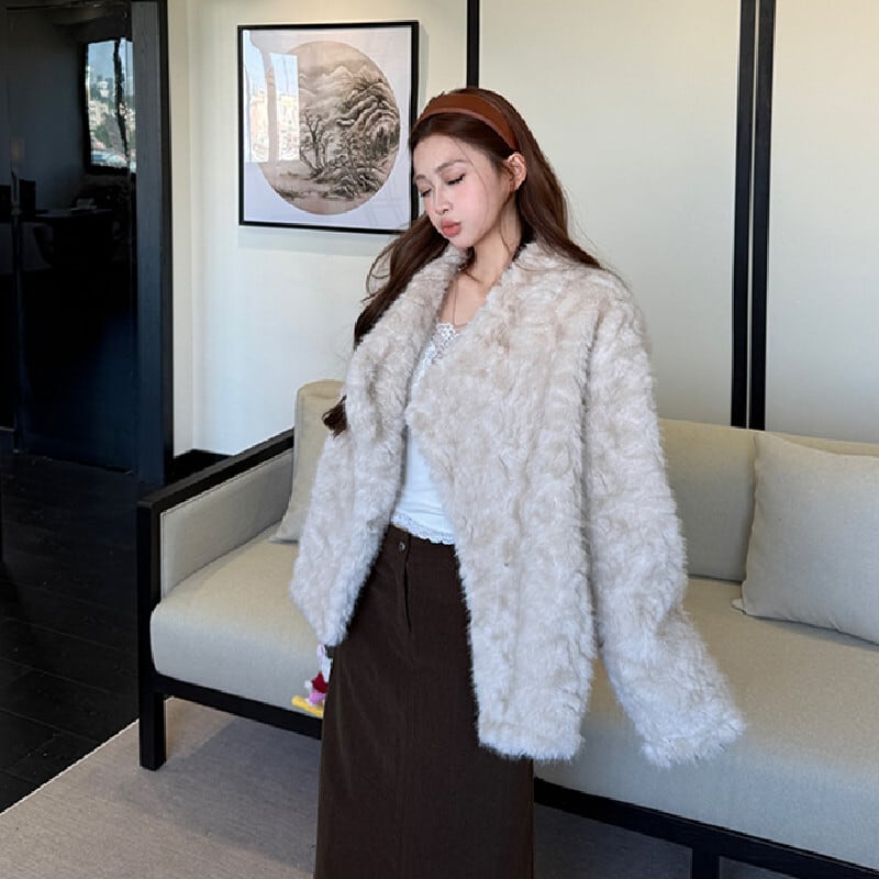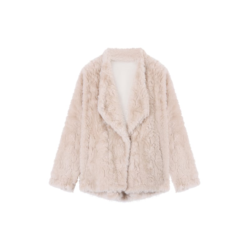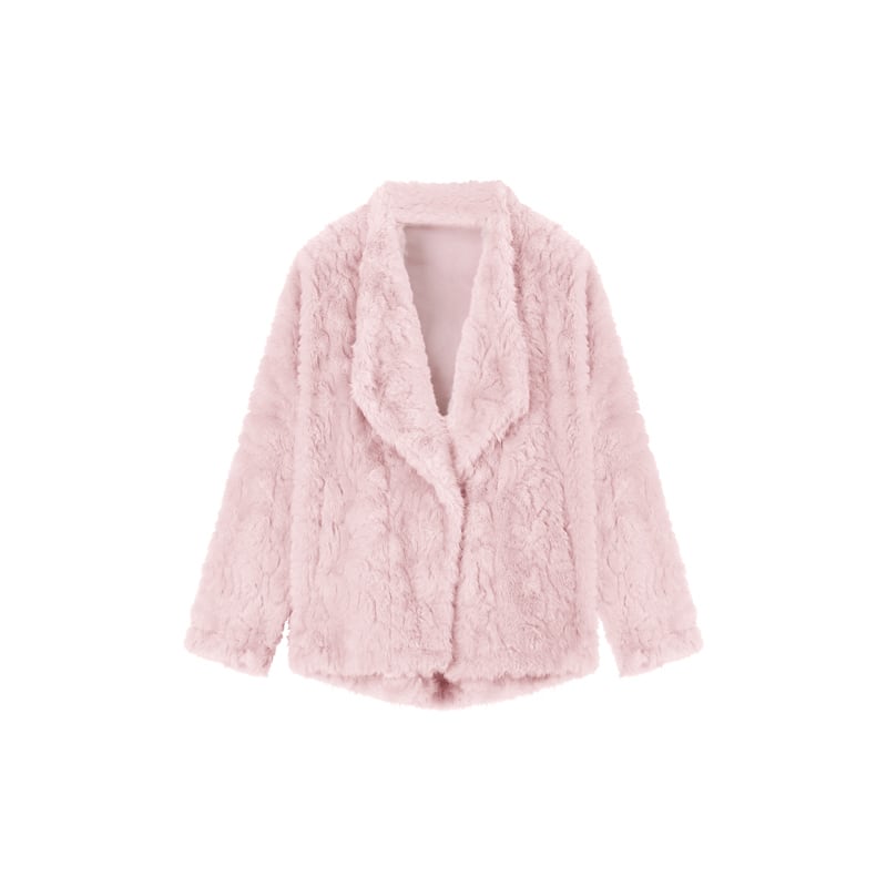 アウター 大衿デザイン フェイクファー ぬくぬく ピンク ベージュ S M L