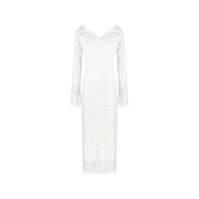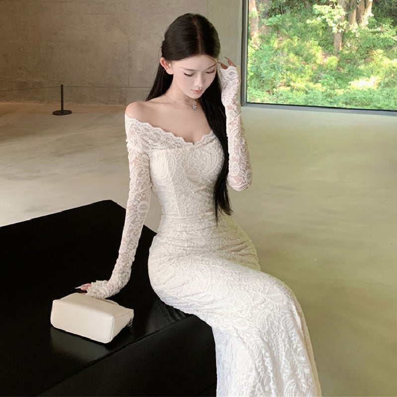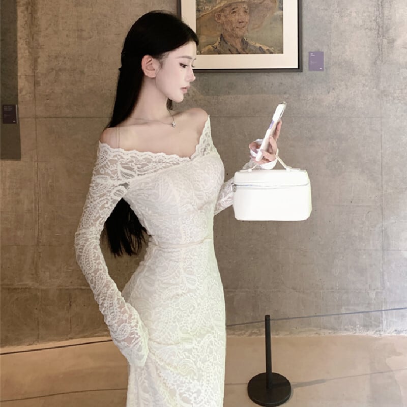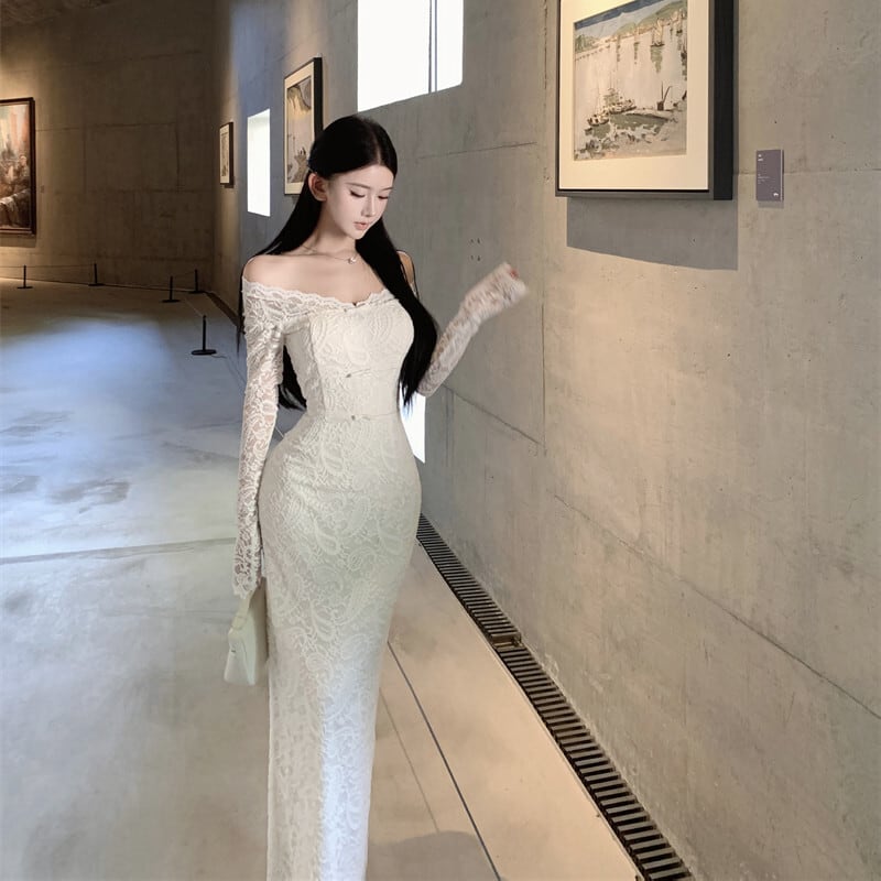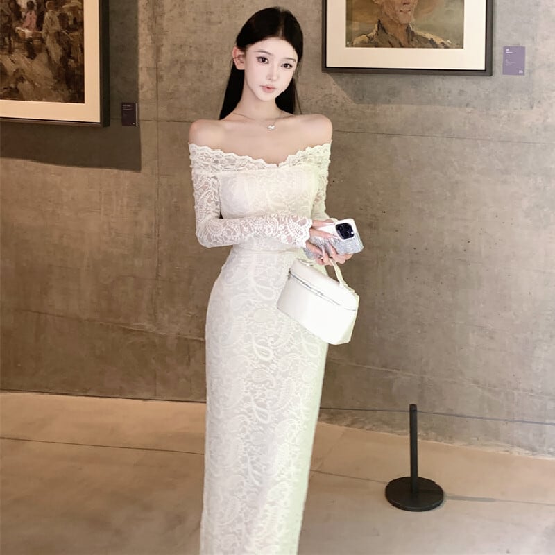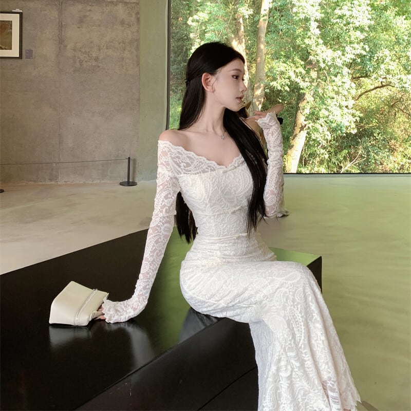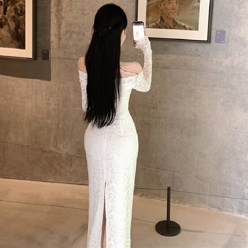 オフショルダー ワンピース レース バックスリット おしゃれ ホワイト S M