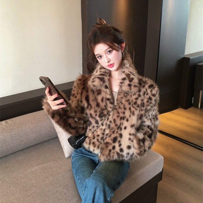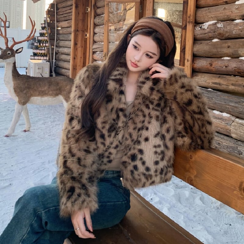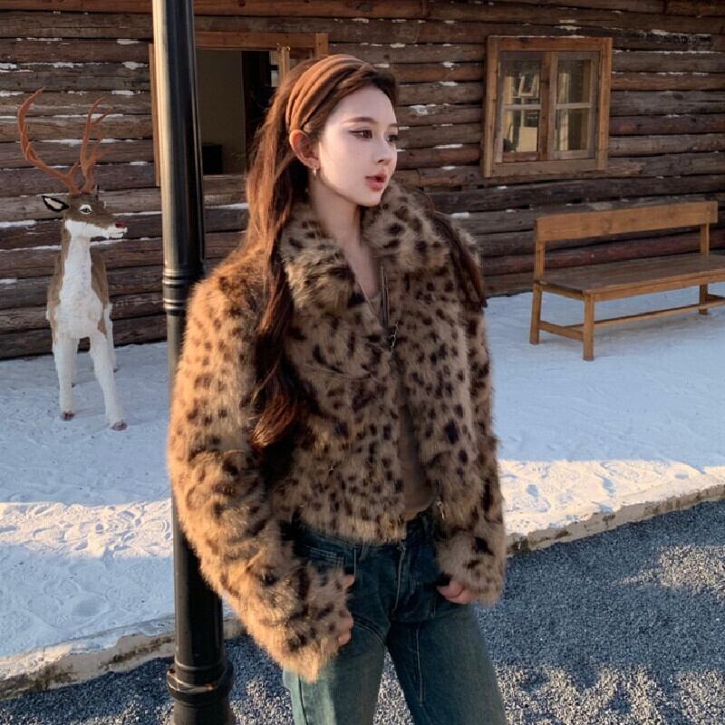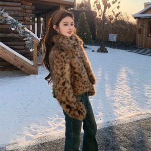 レオパード柄 ギャル風 アウター フェイクファージャケット 正肩デザイン