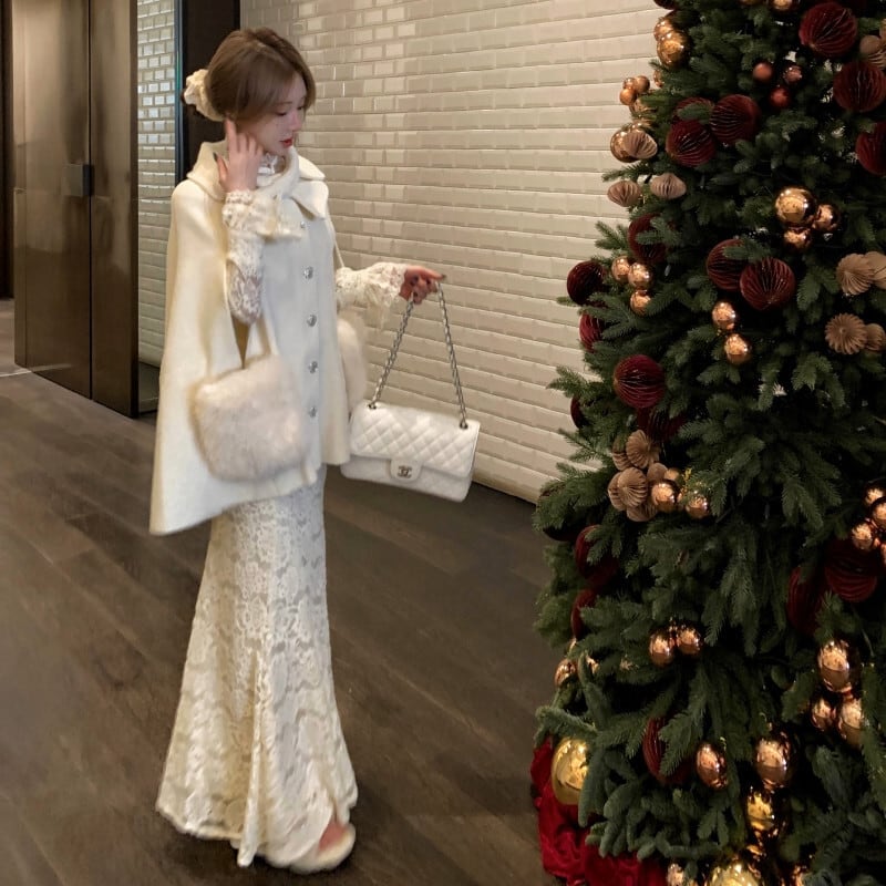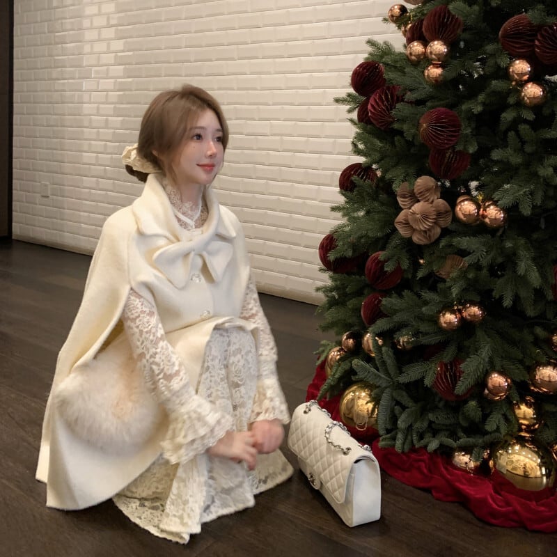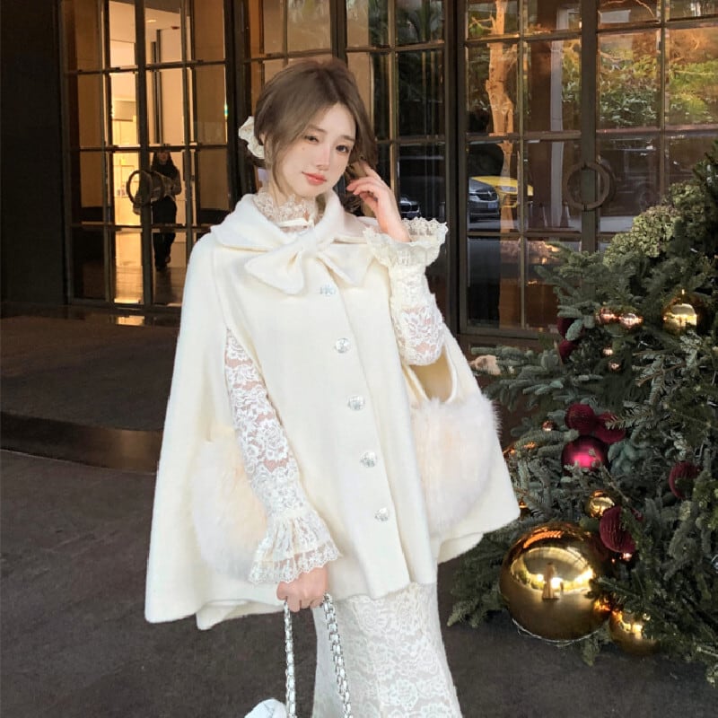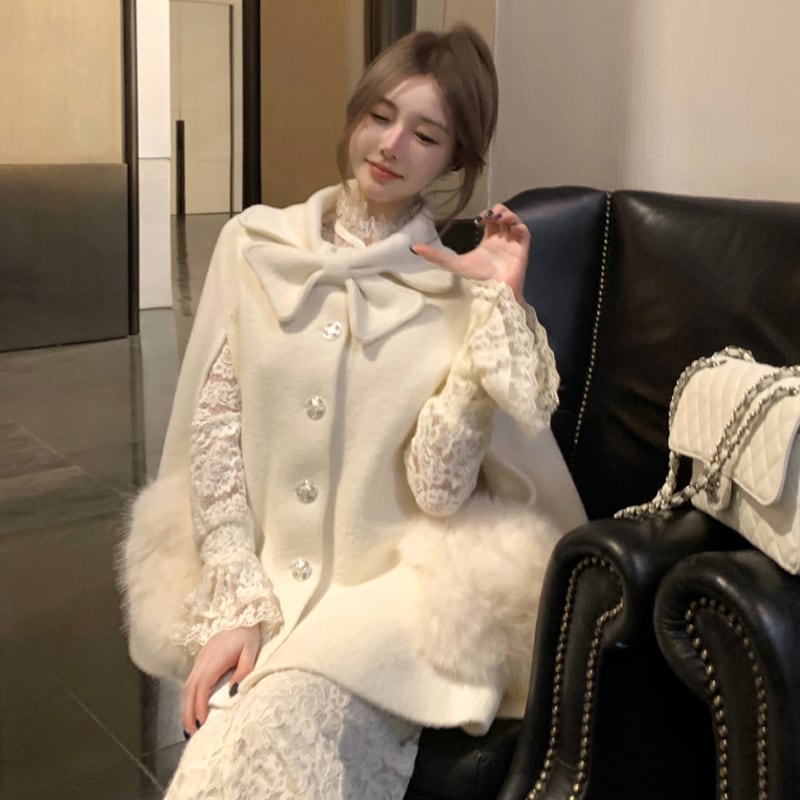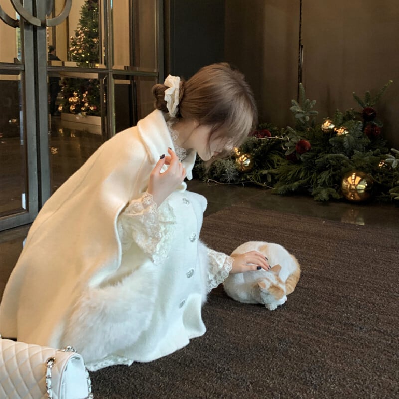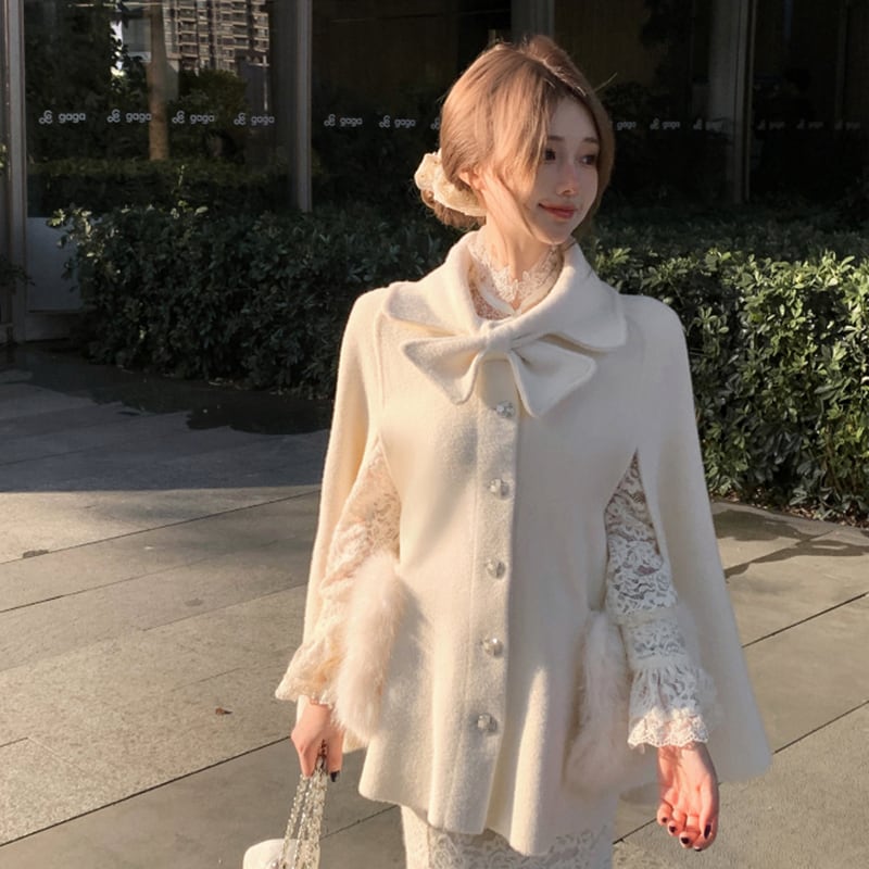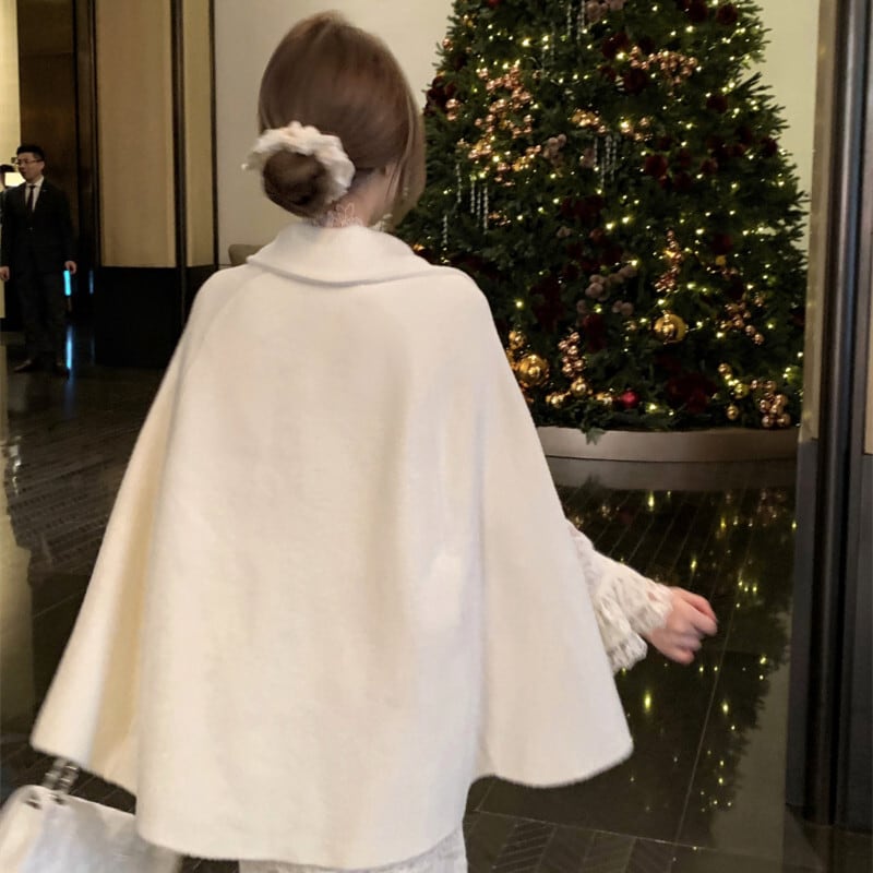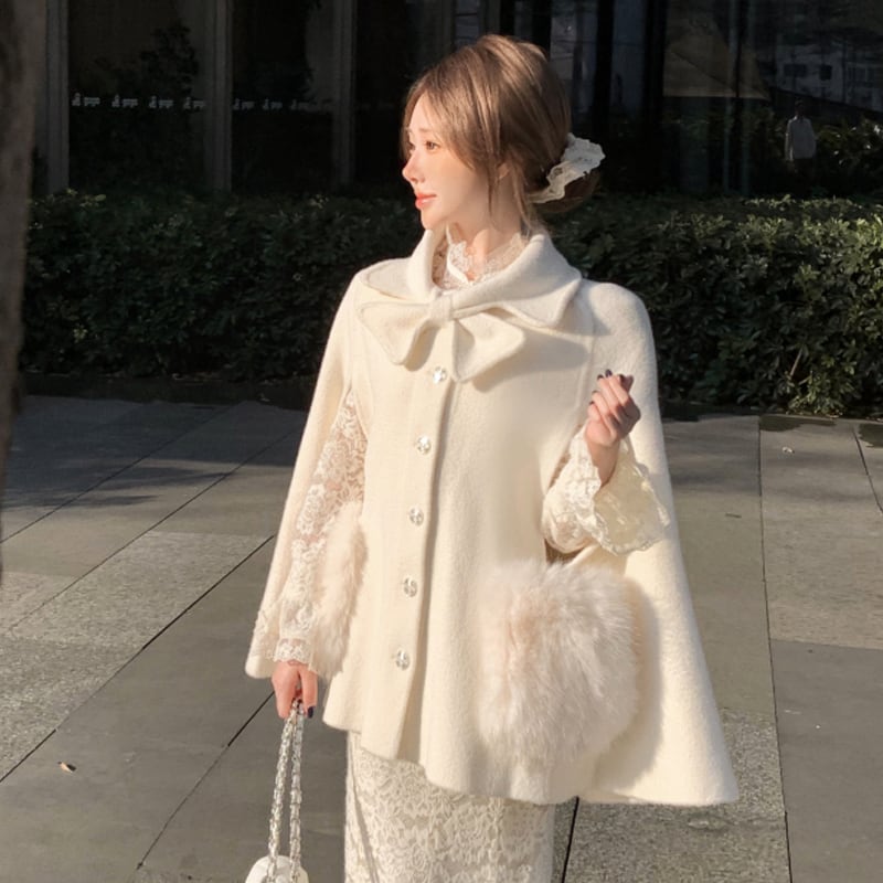 ♡お嬢様風 ケープコート ウール シングルブレスト ライトベージュ