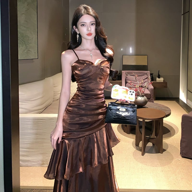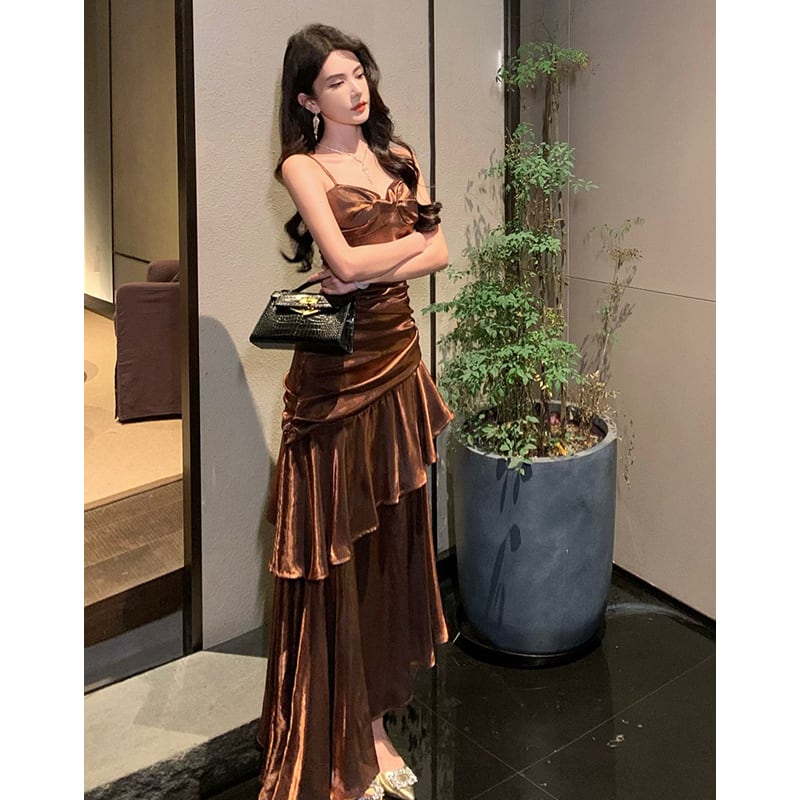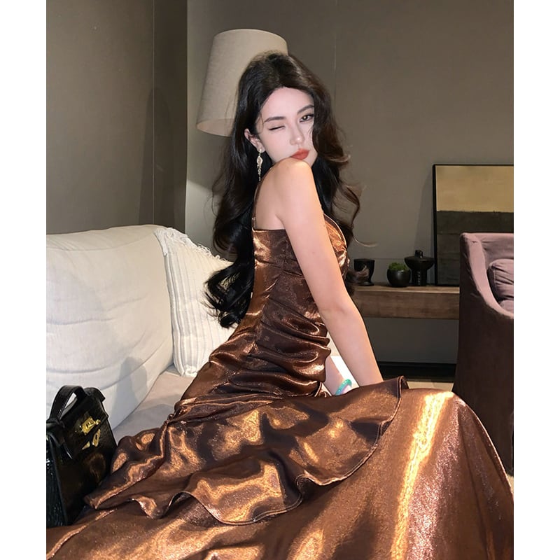 視線集中 フリル パーティー ストラップレスドレス S M L XL