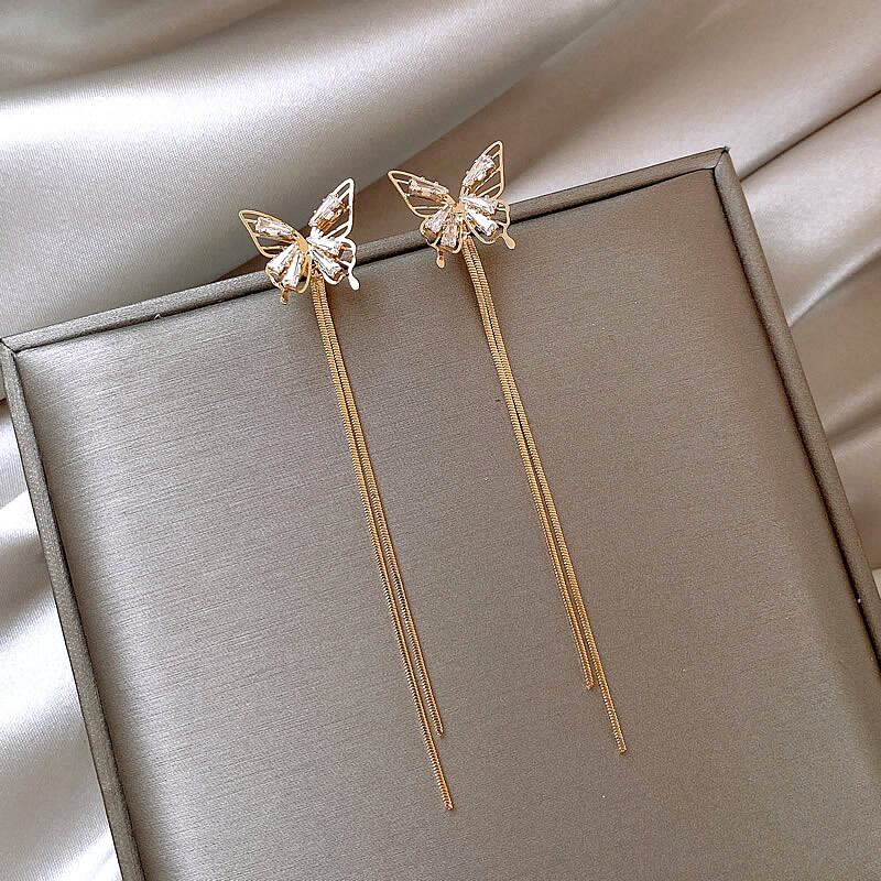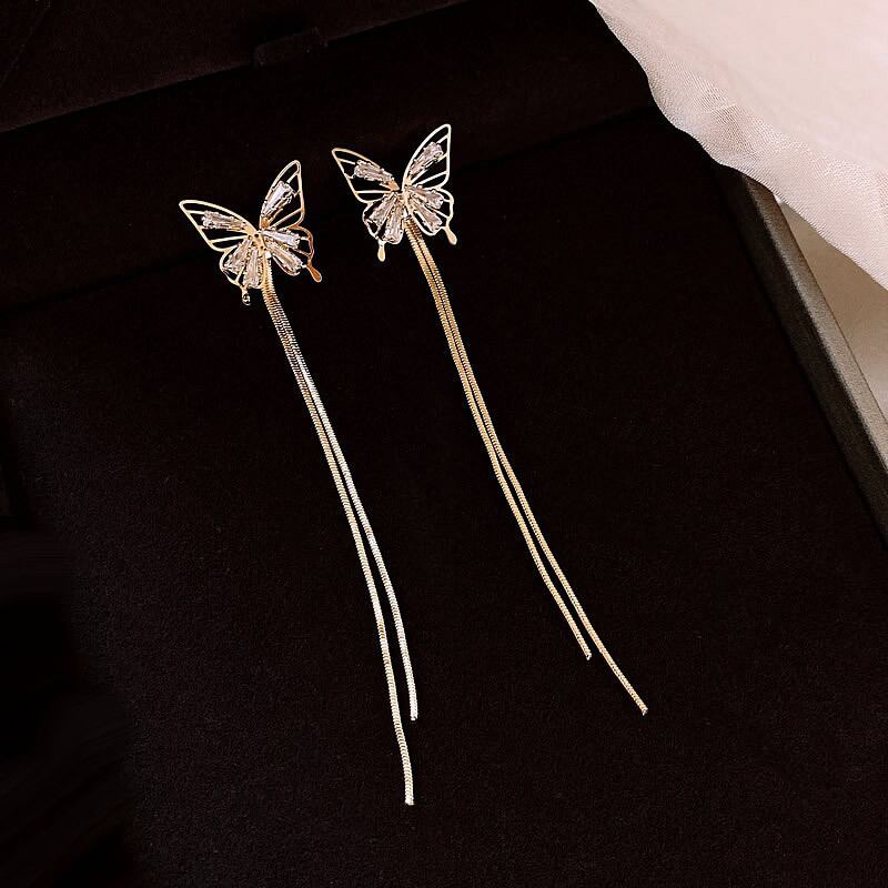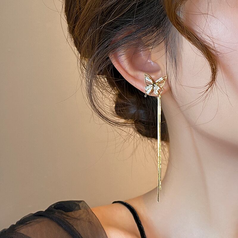 アクセサリー 華やかに揺れる 蝶モチーフ×繊細タッセル ピアス