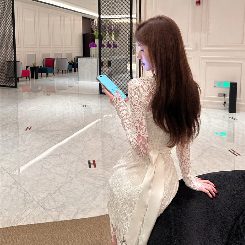 ワンピース レース セクシー リボン 魅せられる ライトベージュ S M L