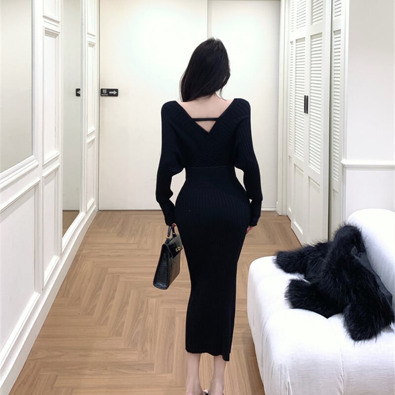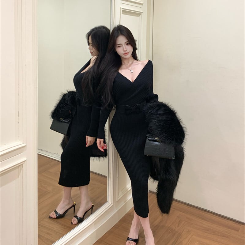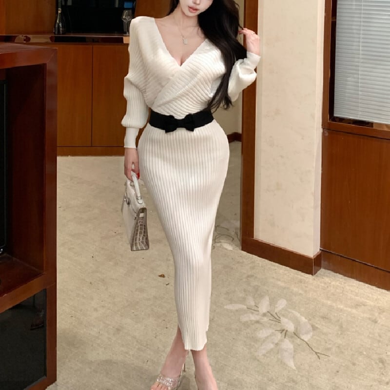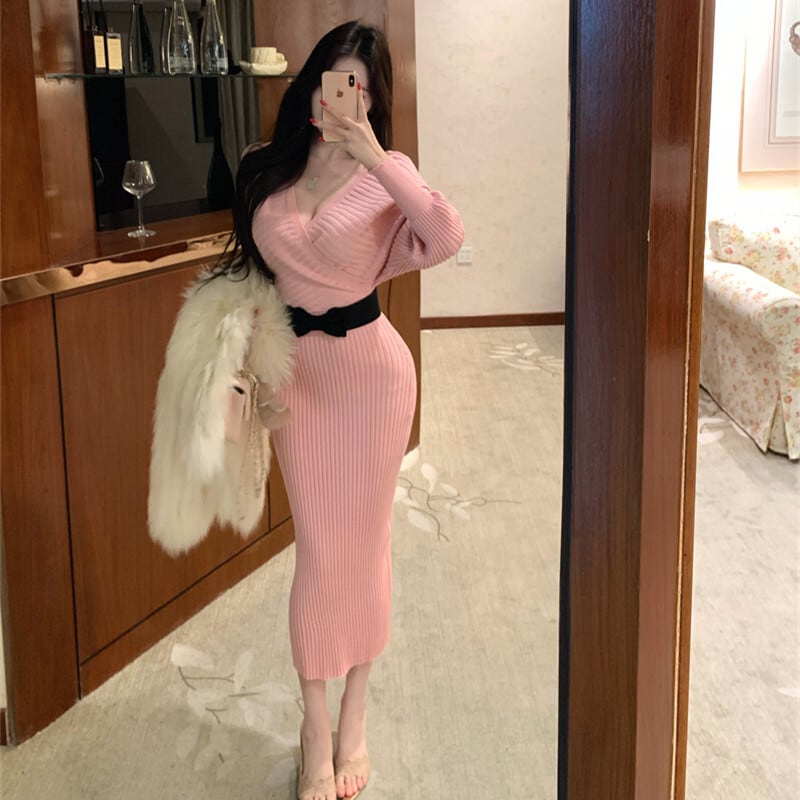 3colors スリムフィット ニットワンピース 大人フェミニン ピンク ホワイト ブラック