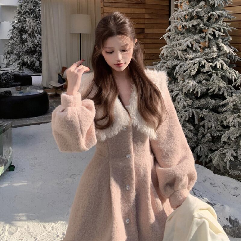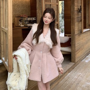 【ピンク/中丈/ファー付き】お嬢様カジュアルチェスターコート