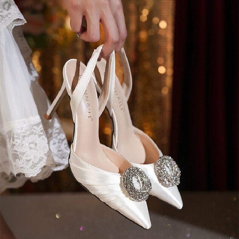 シューズ サンダル ラインストーン 宴会 ホワイト 7CM/9CM