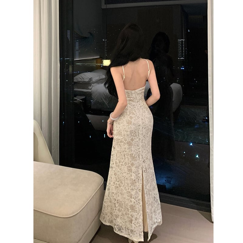 レース バックスリット 女っぽさが漂う パーティードレス ベージュ S M L