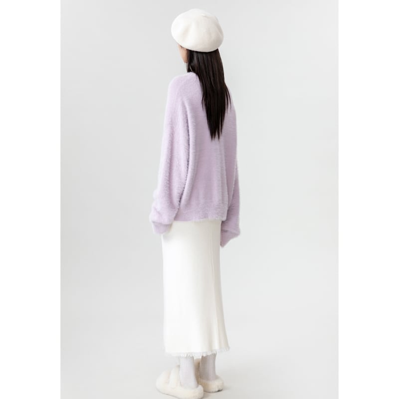 トップス モヘア 無地 ラウンドネック ライトパープル S M L