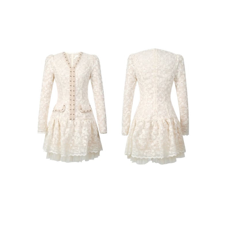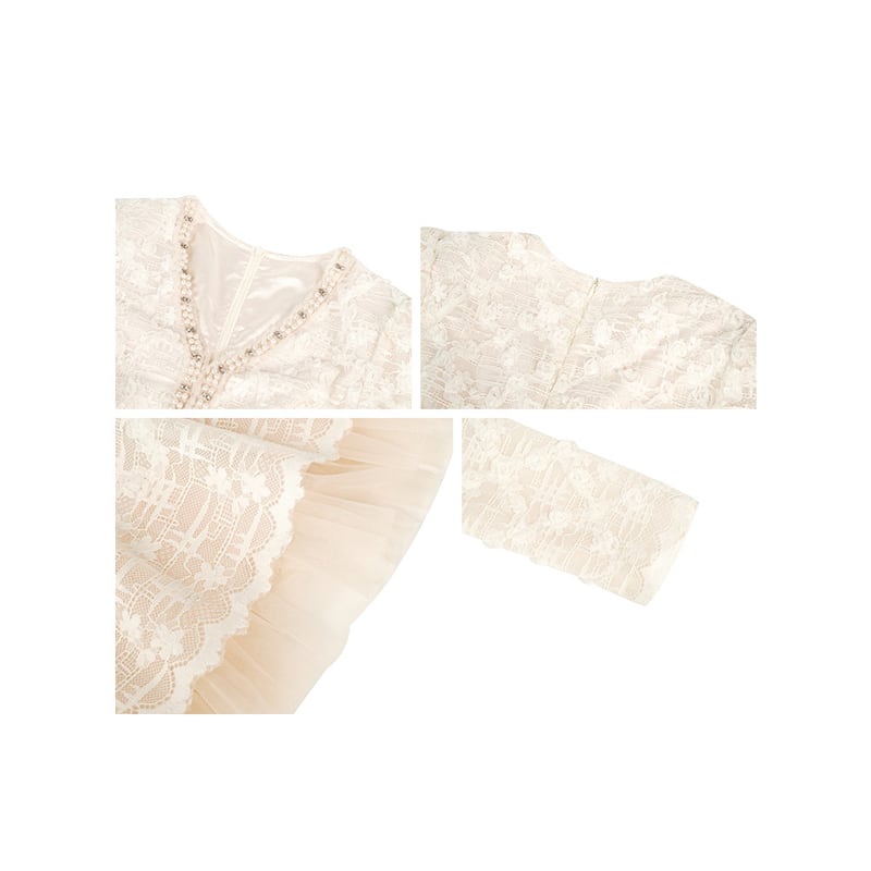 【夕暮薔薇シリーズ】ワンピース レース Vネック スウィート ベージュ S M L XL