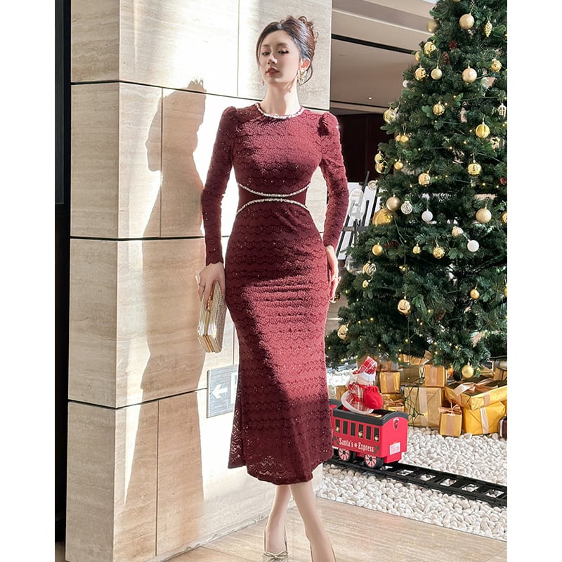 【夕暮薔薇シリーズ】ワンピース フェミニン 宴会 綺麗め レッド S M L XL