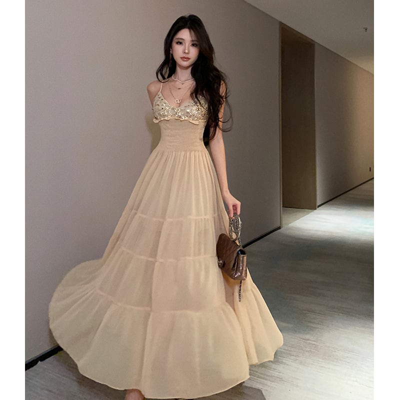 スパンコール ロングワンピース パーティー キラキラ 視線集中 S M L
