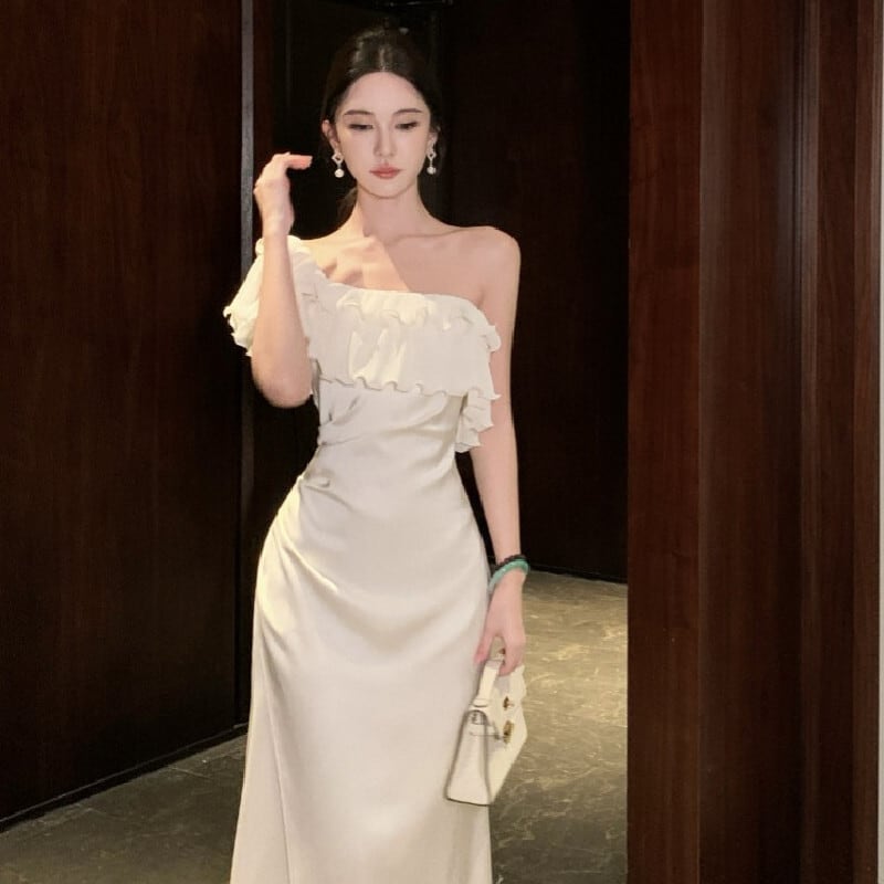 オフショルダー 気質満点 デート ウエストイン ライトベージュ S M L