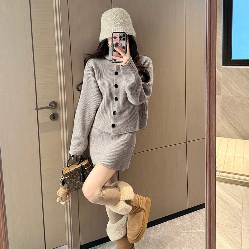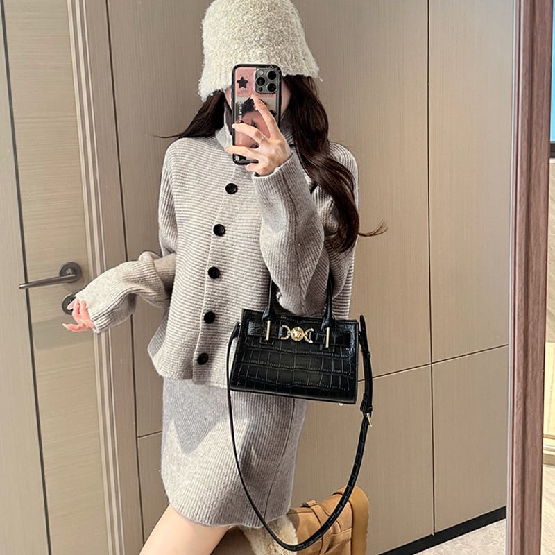 セットアップ ニット シングルブレスト シンプル ダークベージュ レッド グレー