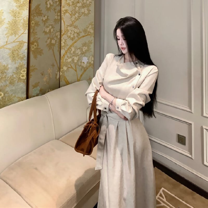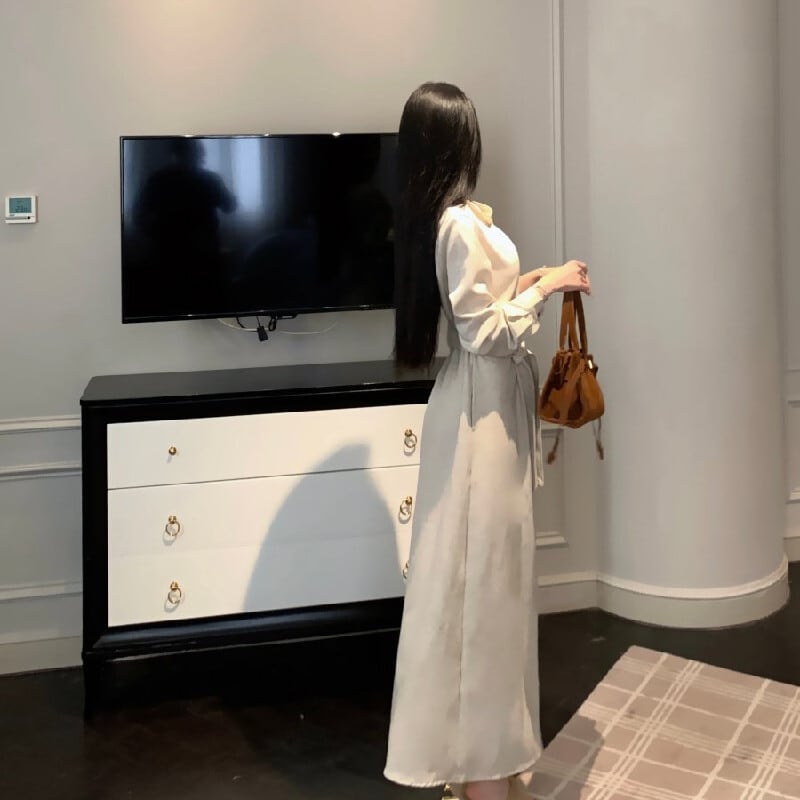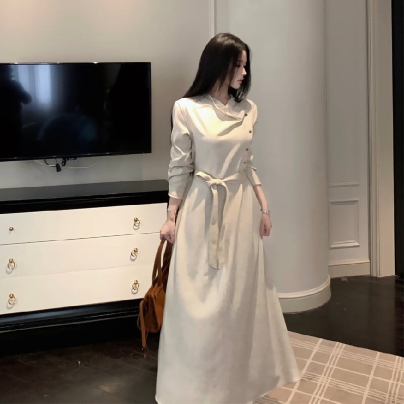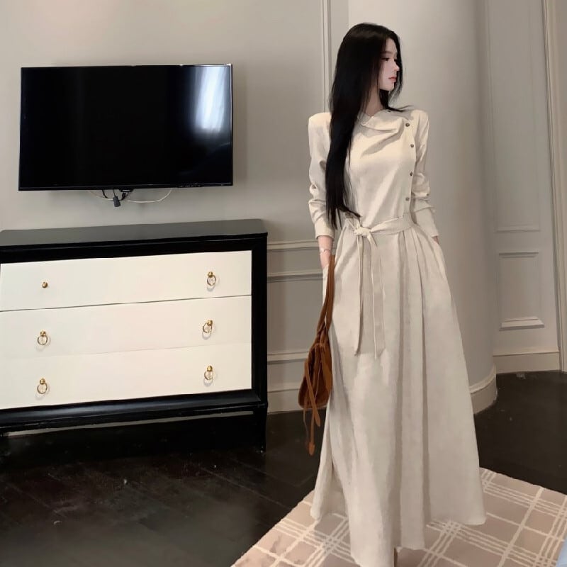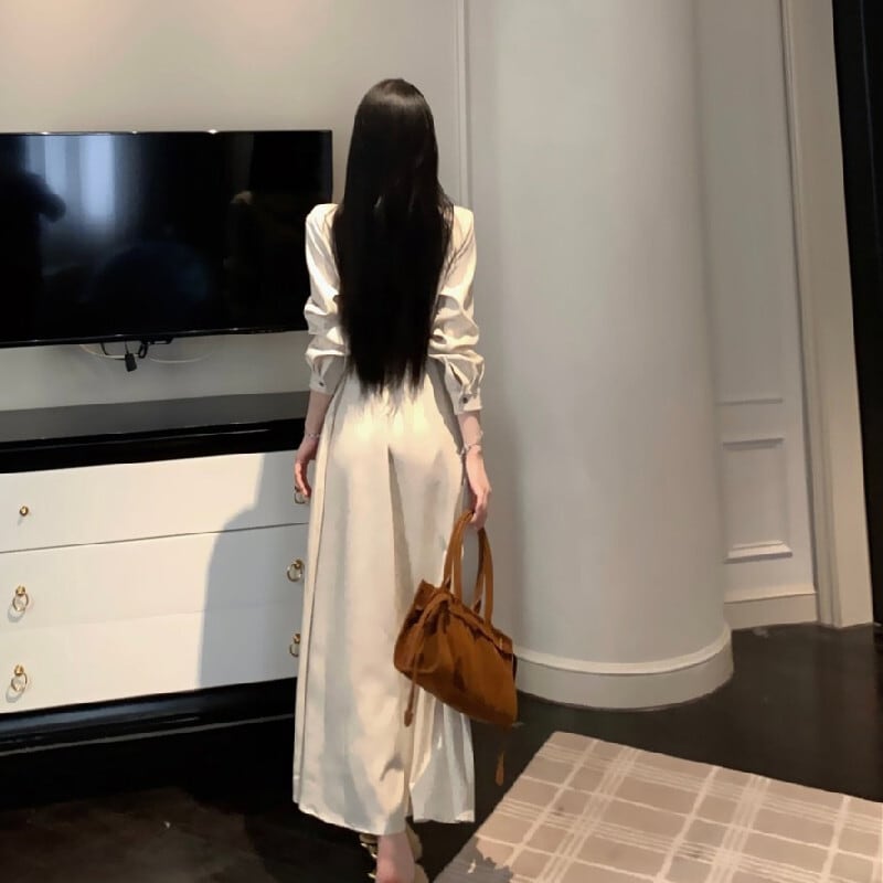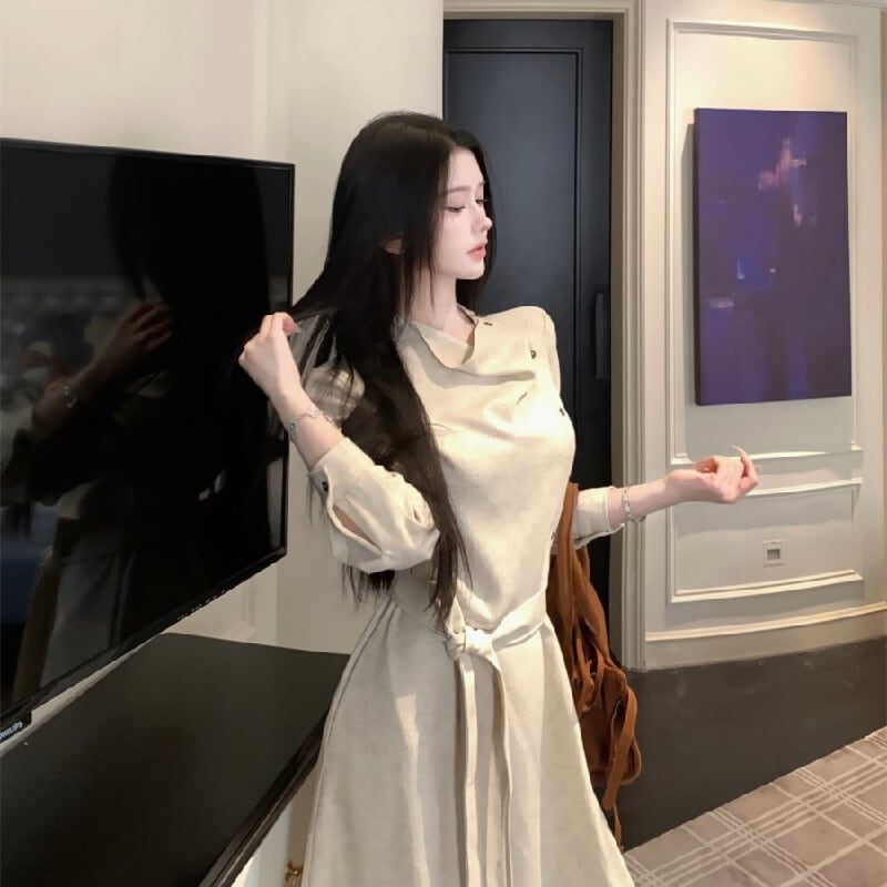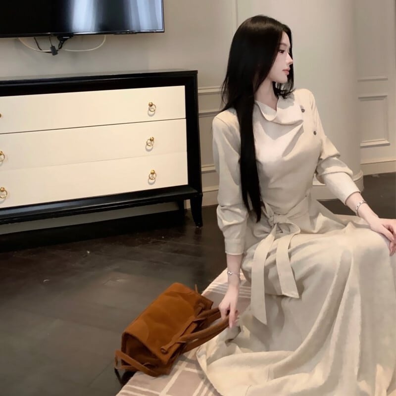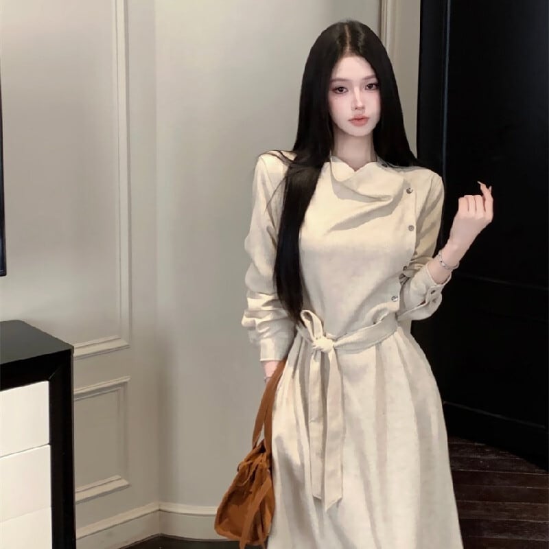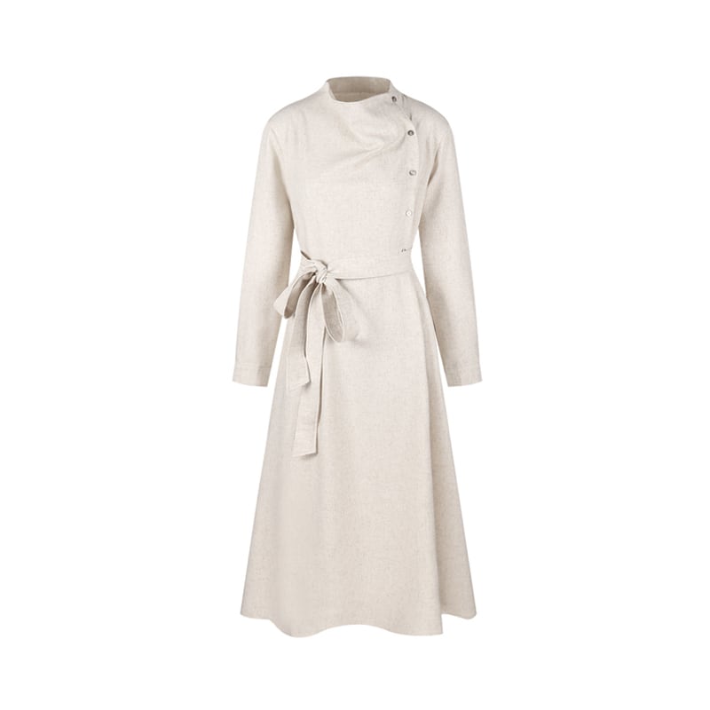 トレンチコート風ワンピース カジュアル 長袖 エレガント ベージュ S M L