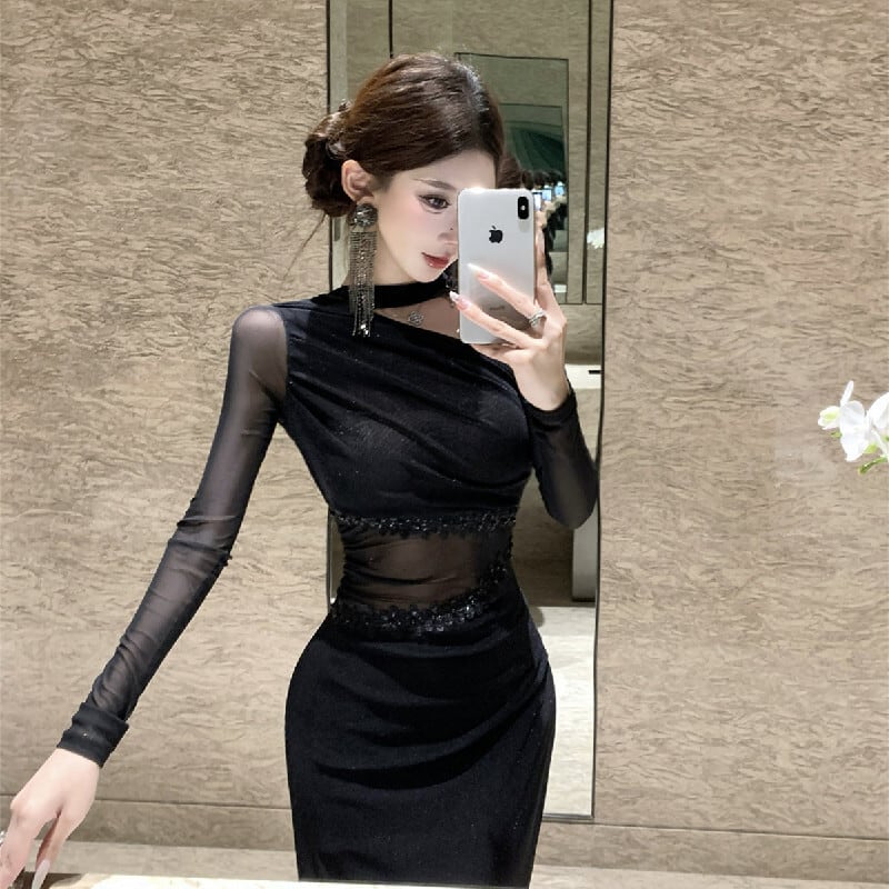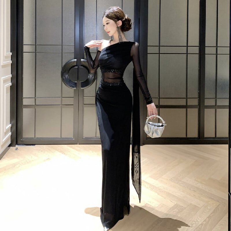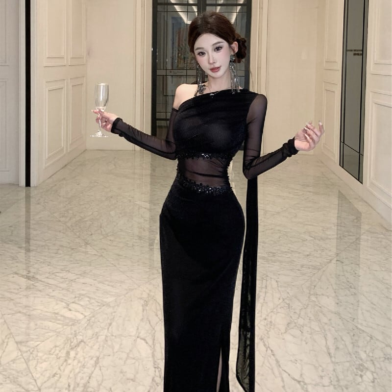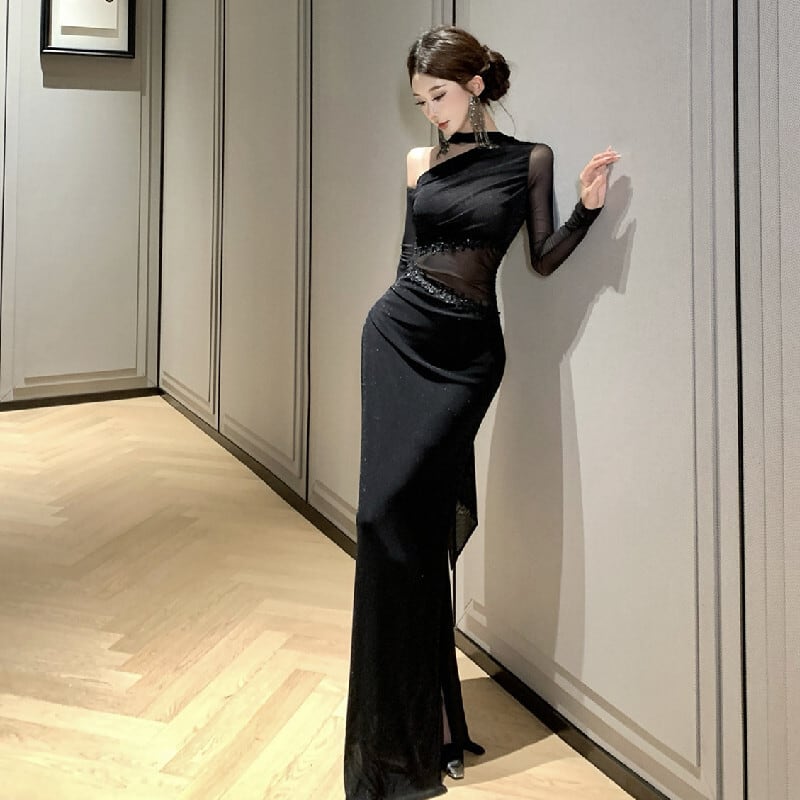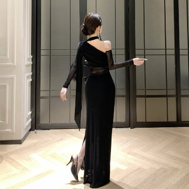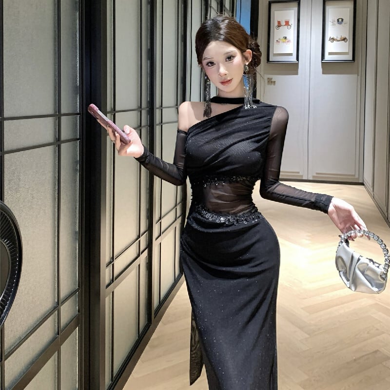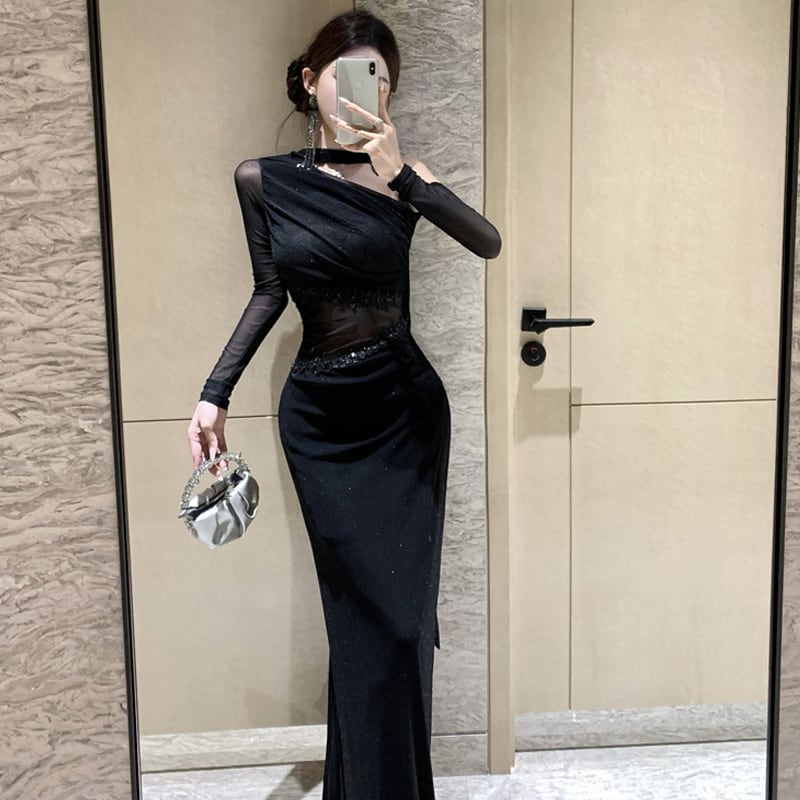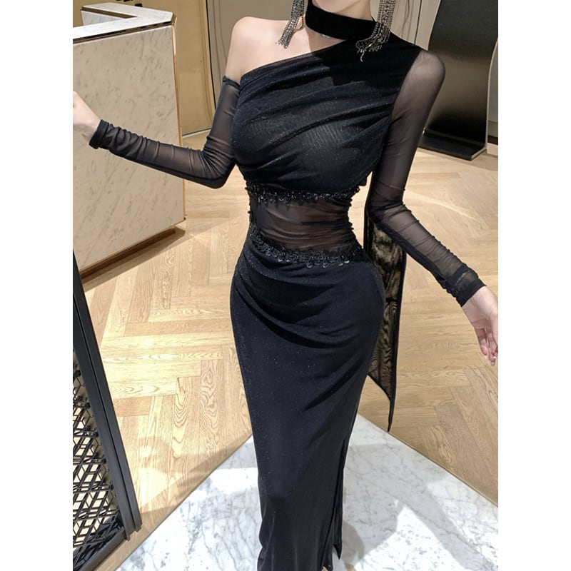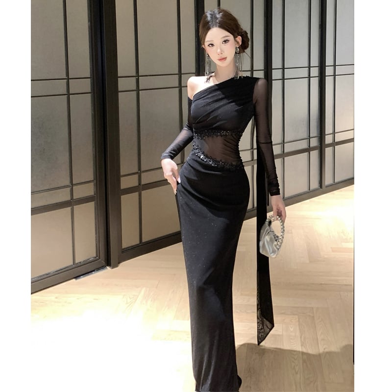 ワンショルダードレス メッシュ 魅せられる デザイン感 ブラック S M L
