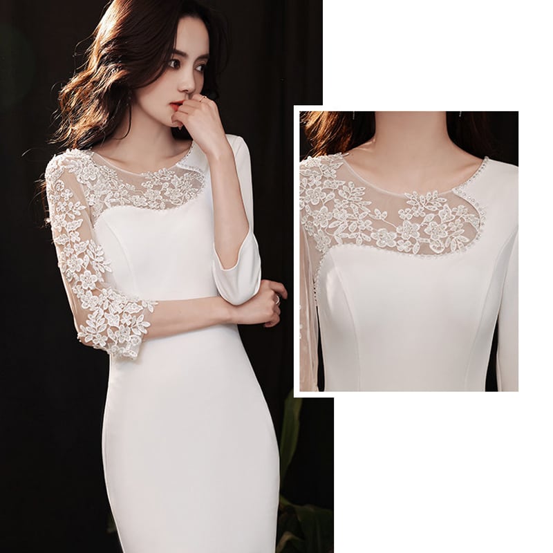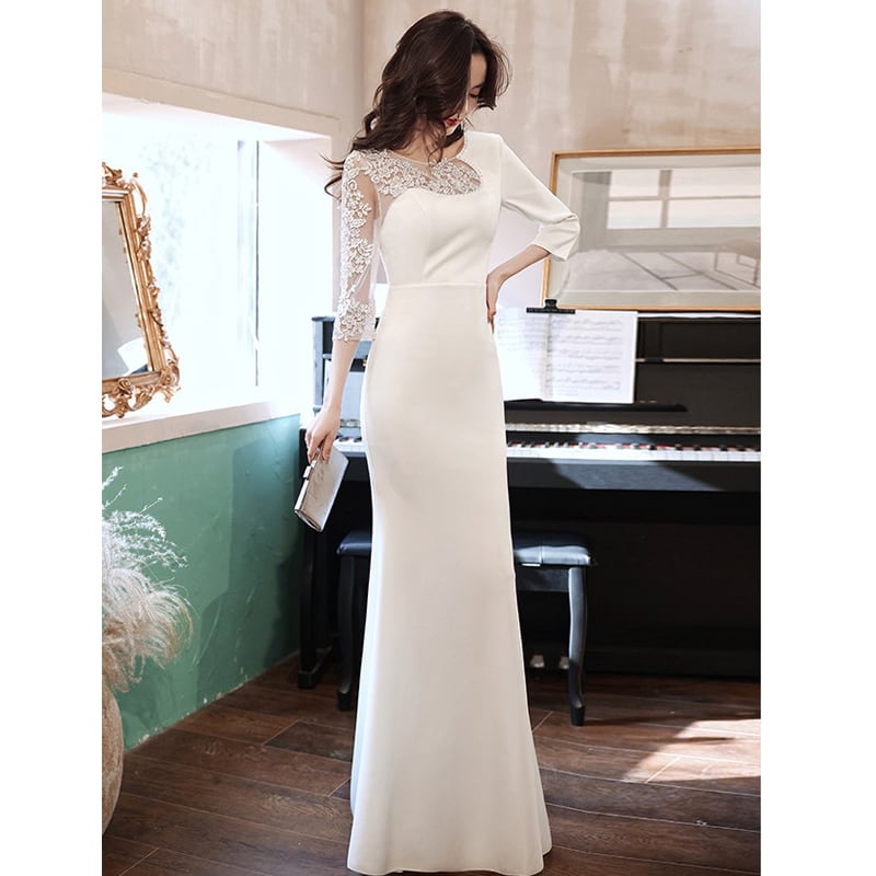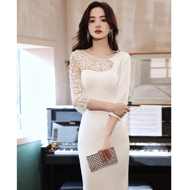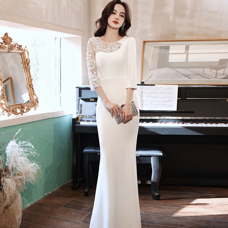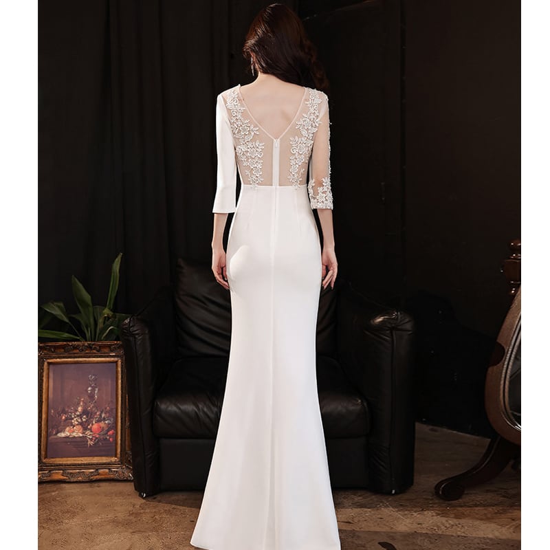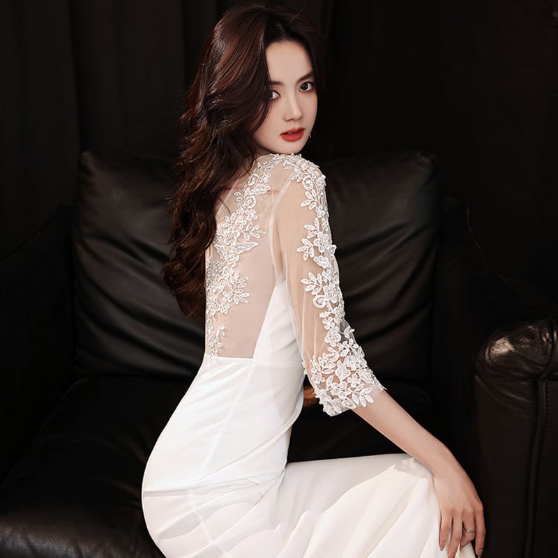 パーティードレス 刺繡 バックレス ロング丈 披露宴 ホワイト S M L XL 2XL