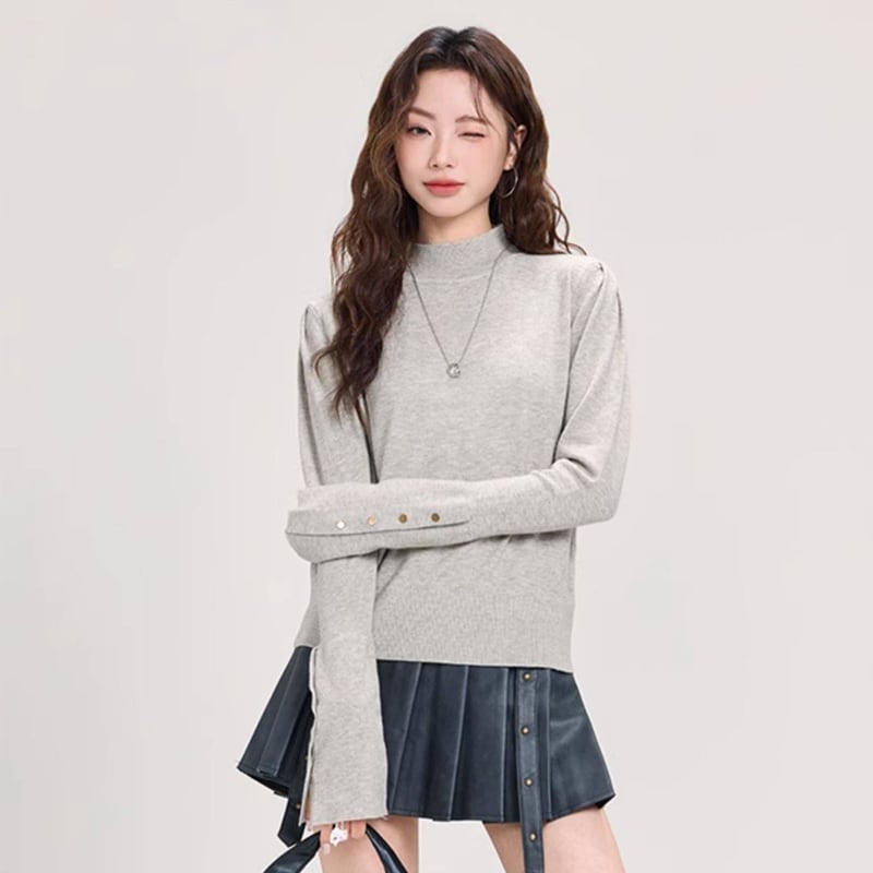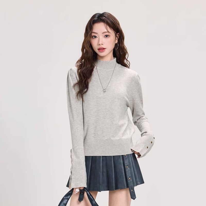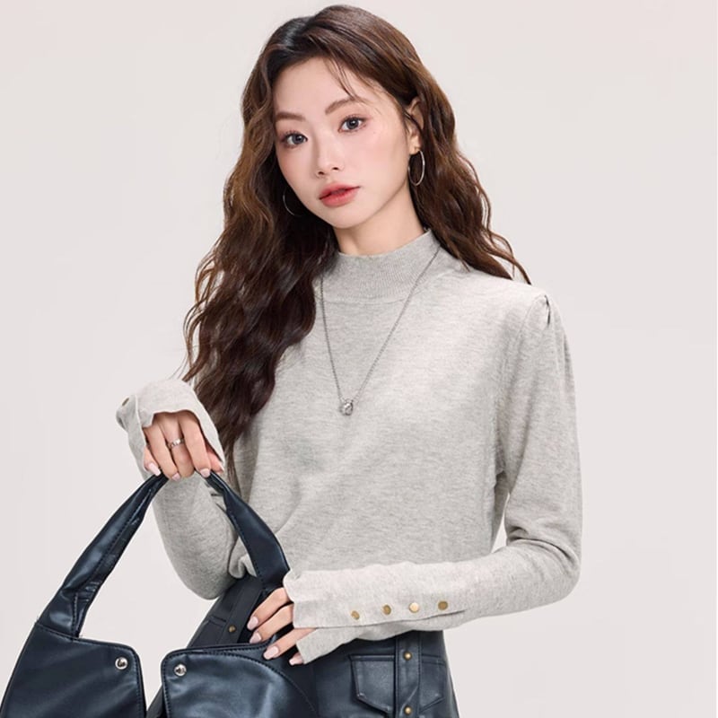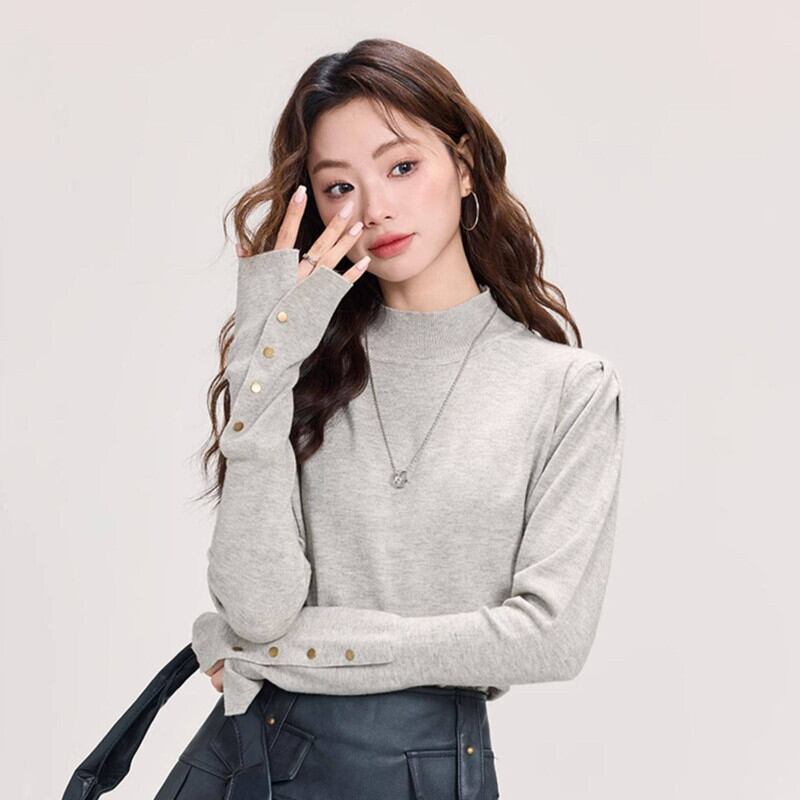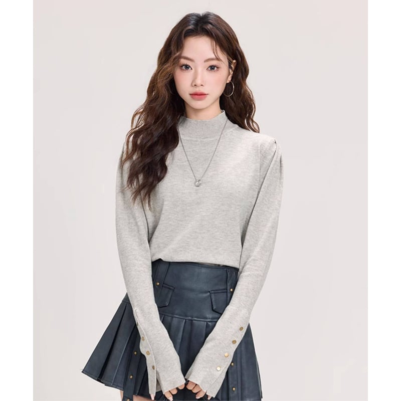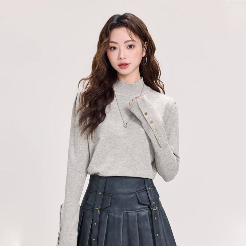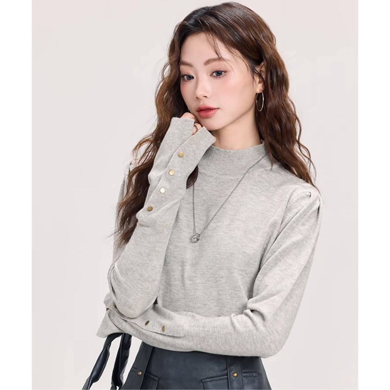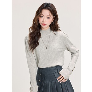 トップス ハーフタートルネック ニット インナー 無地 シンプル グレー S M L