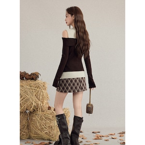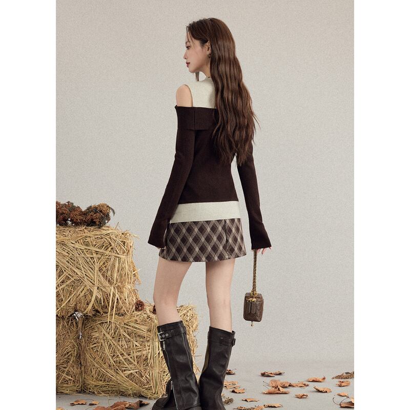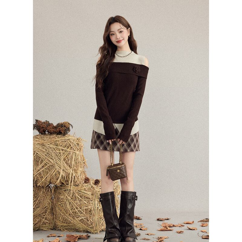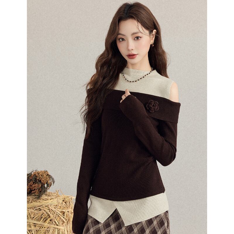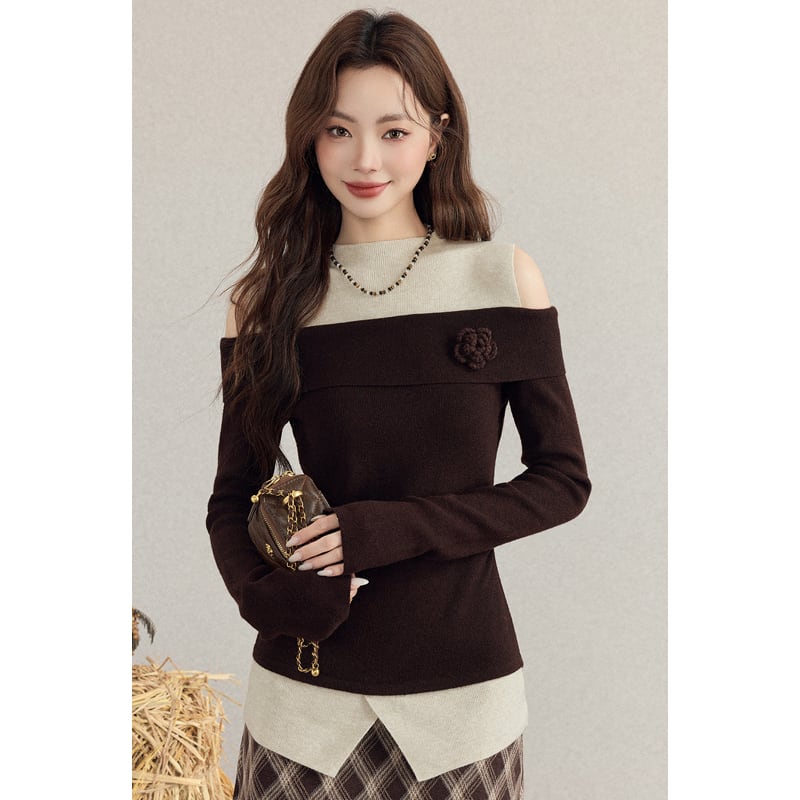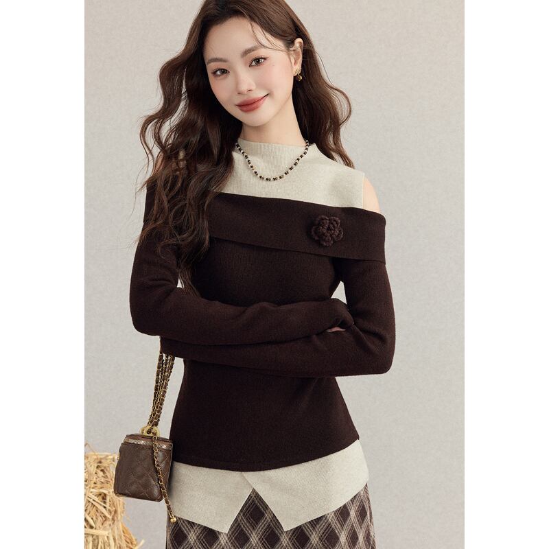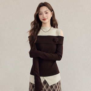 トップス ニット インナー 配色 オフショルダー 気質溢れる デート S M L