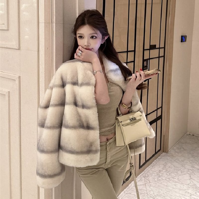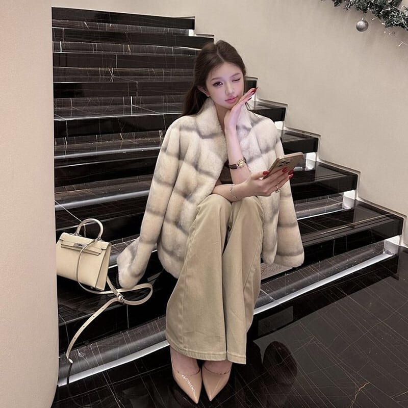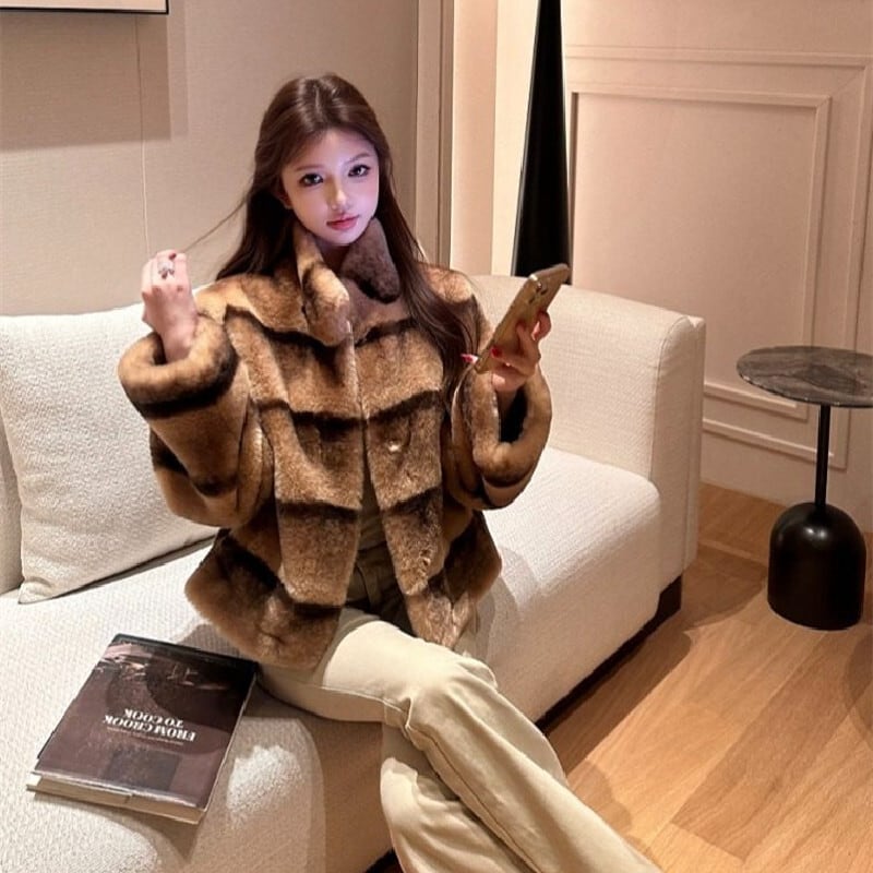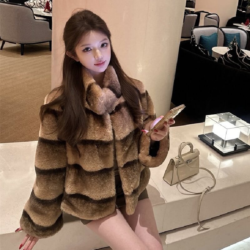 2colors アウター ストライプ柄 配色 ファッション ブラウン ホワイト S M