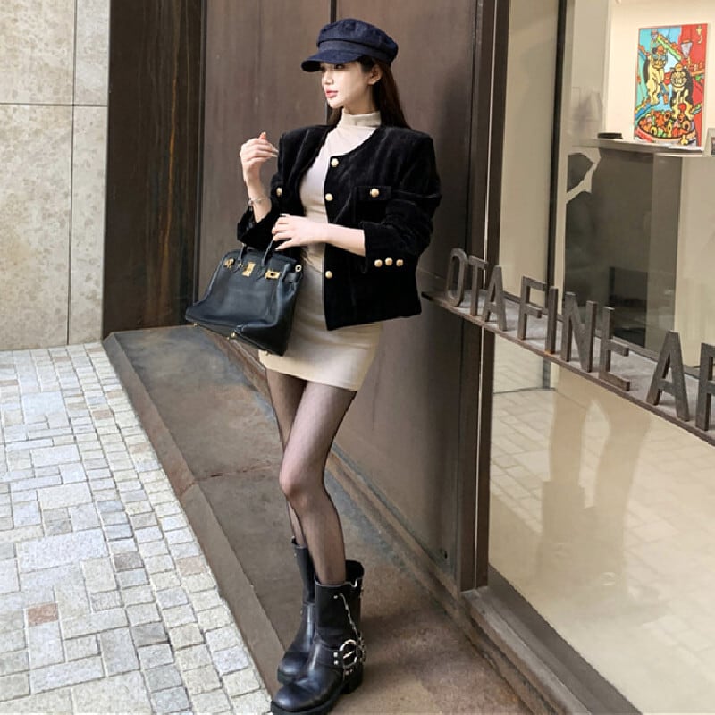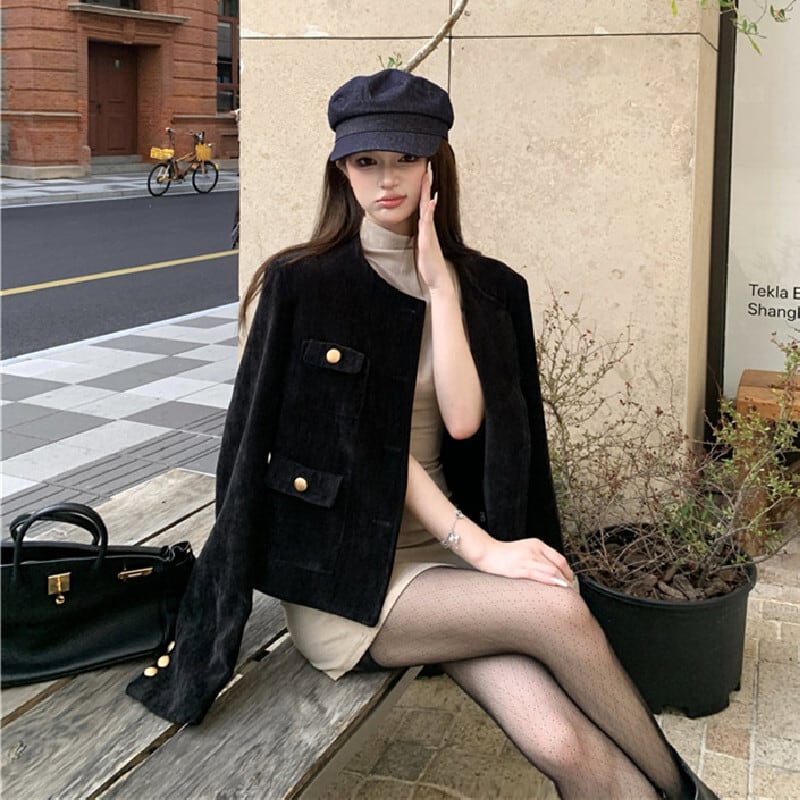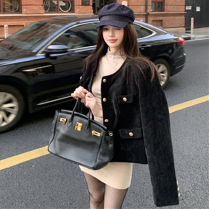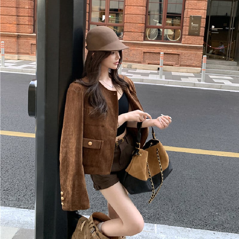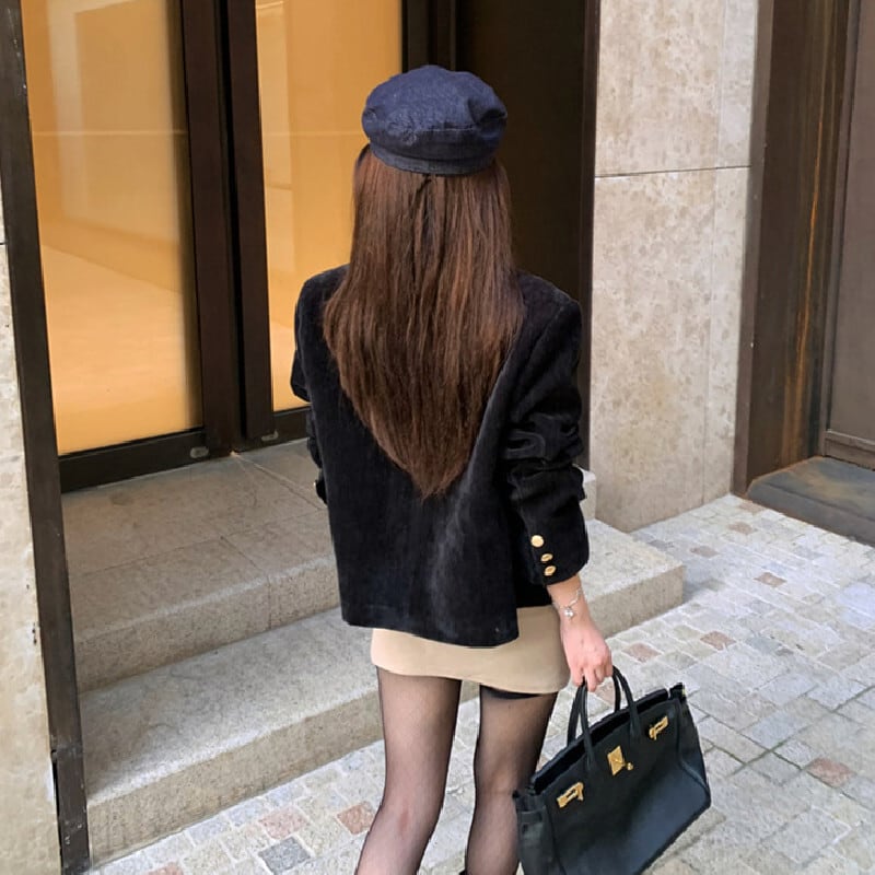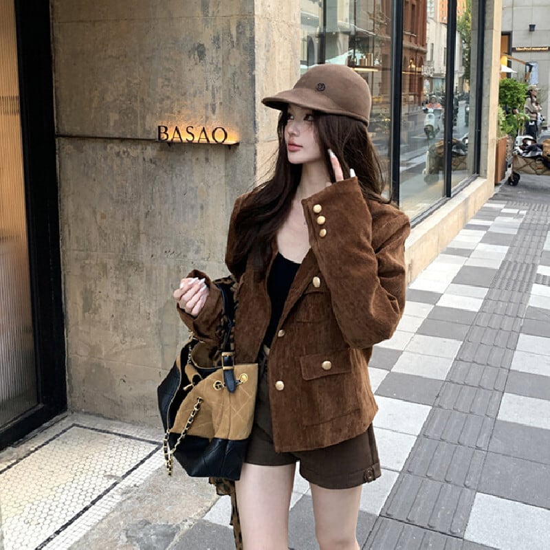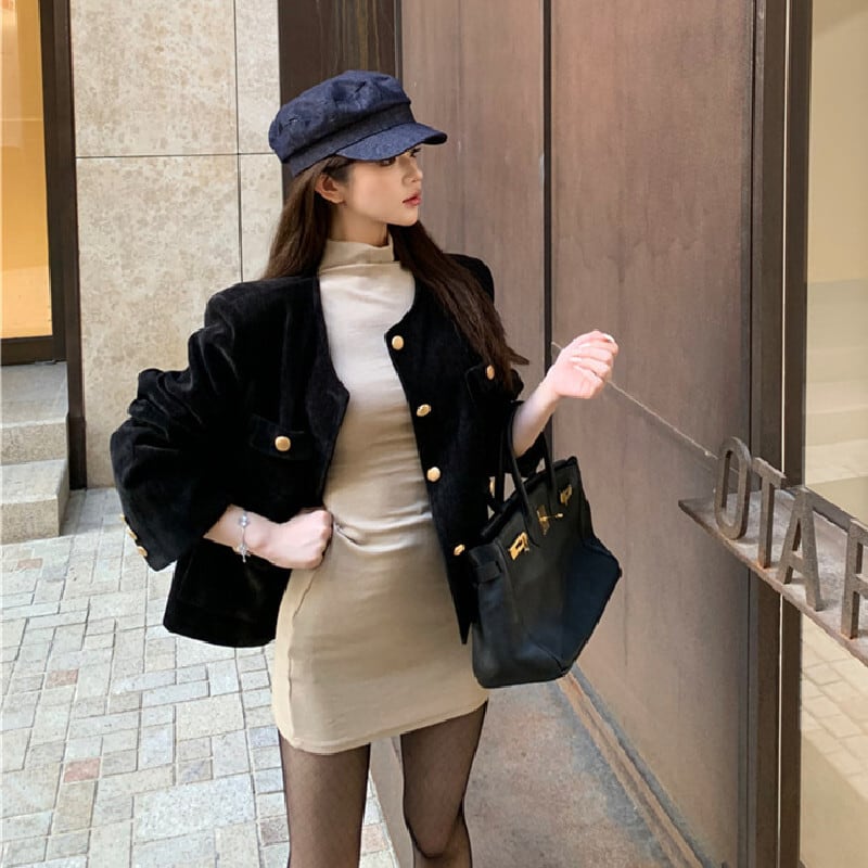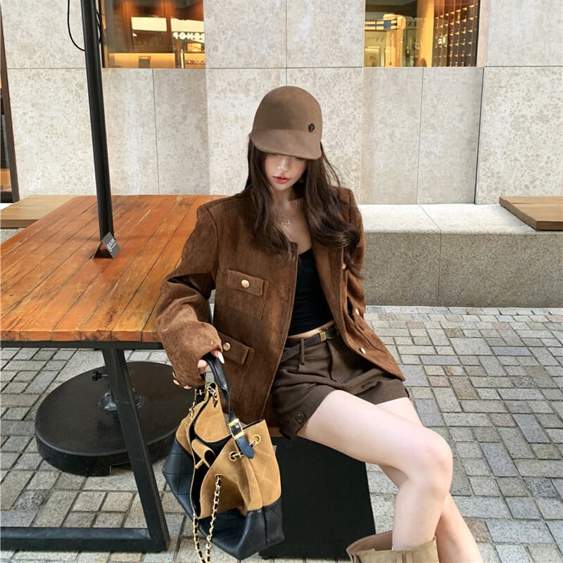 アウター ジャケット 長袖 綿入れ お出かけコーデ ブラック コーヒー色 S M L