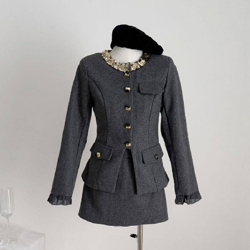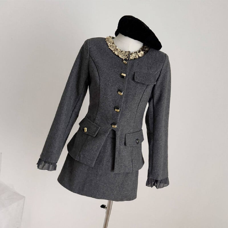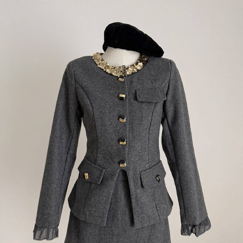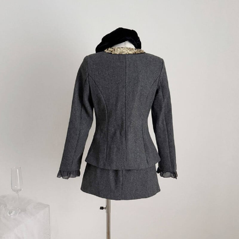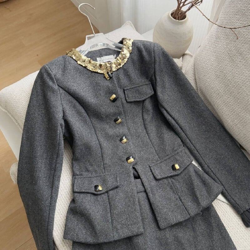 セットアップ ジャケット+スカート スパンコール セレブリティ ダークグレー S M L
