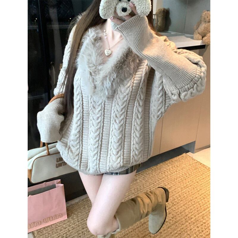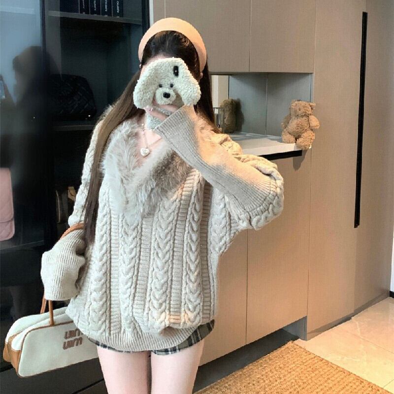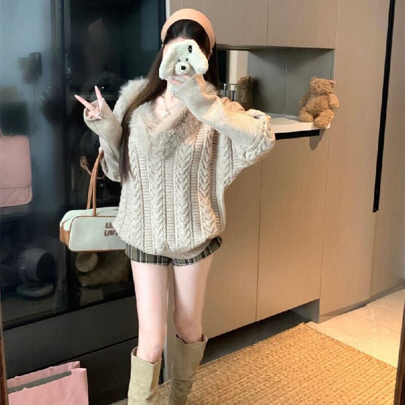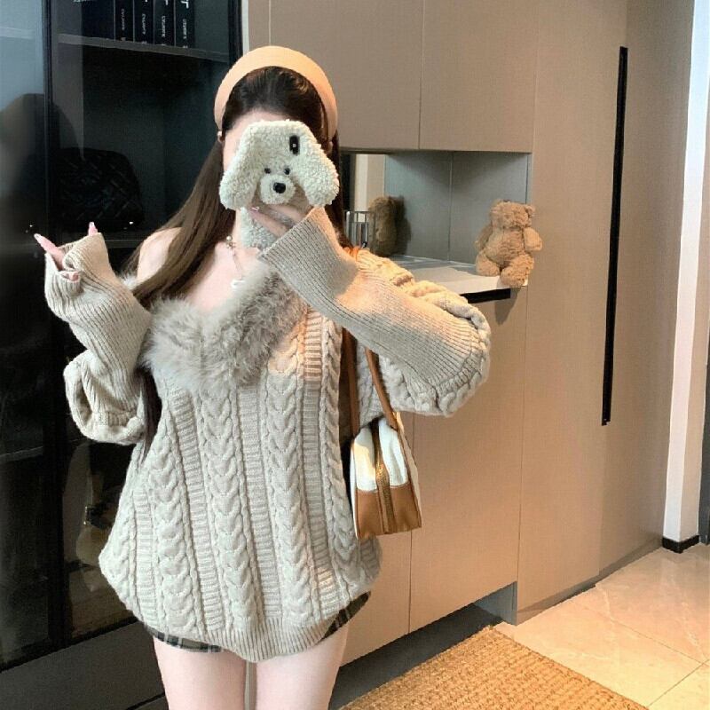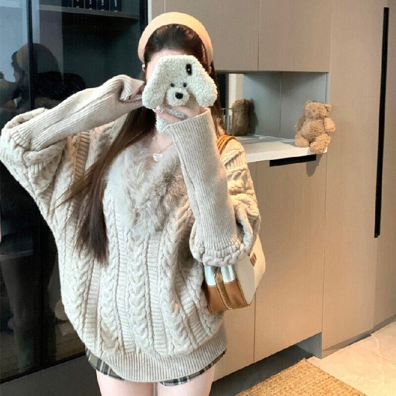 トップス ニットセーター ふわふわ ドルマンスリーブ ダークベージュ