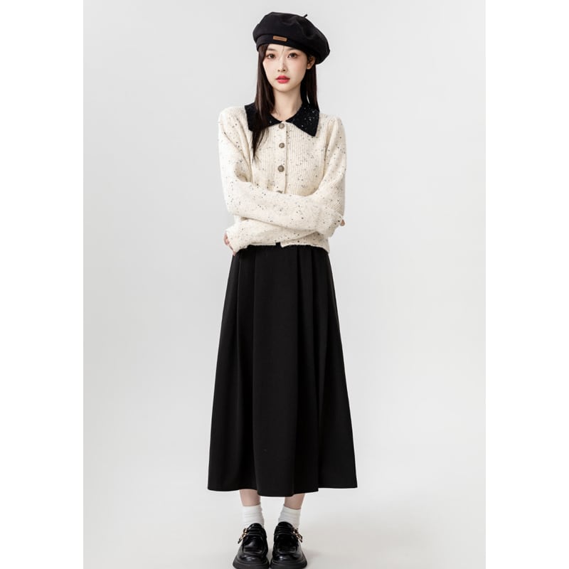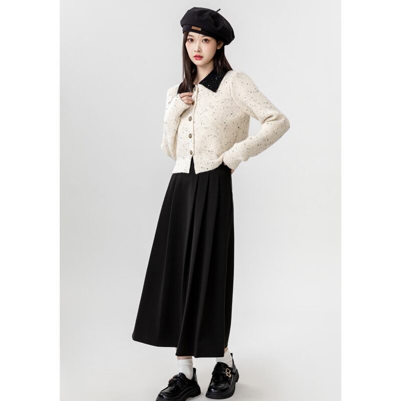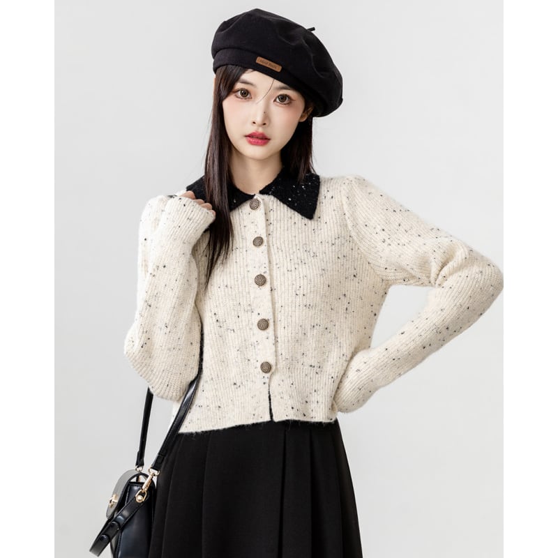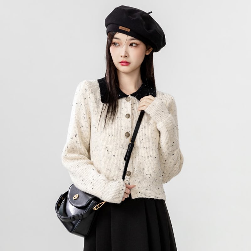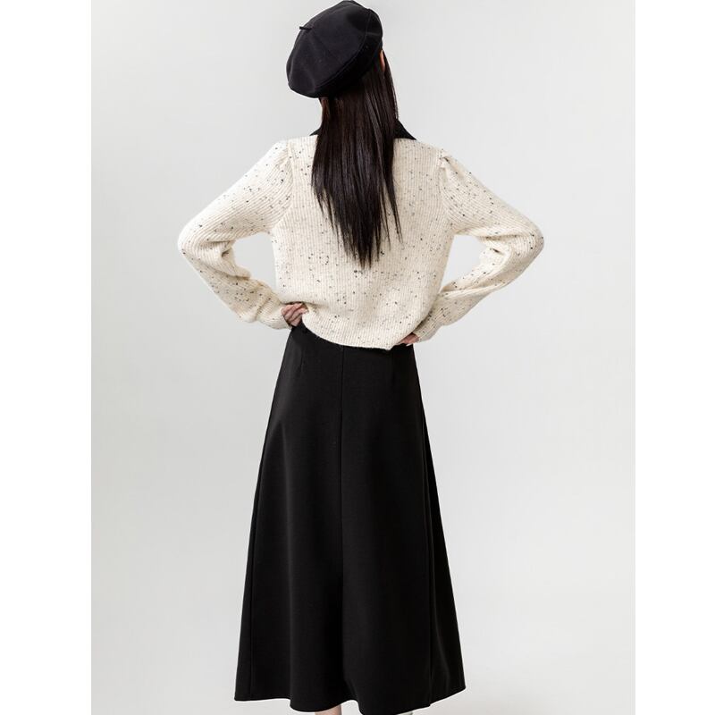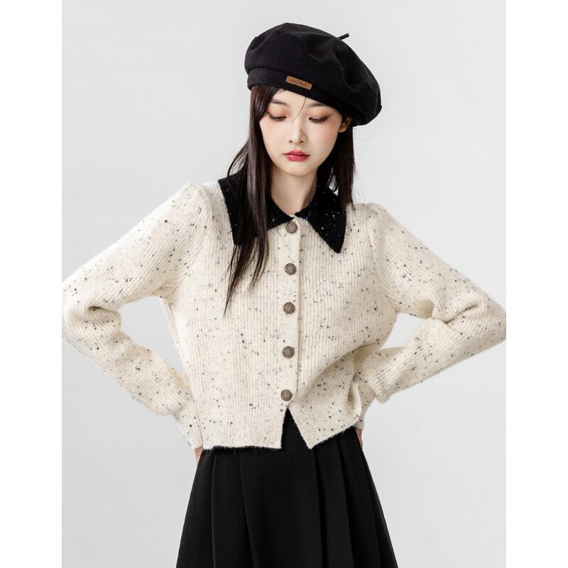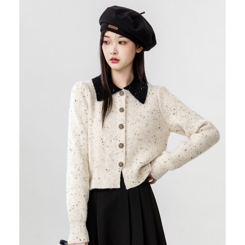 トップス ニットセーター 折り襟デザイン 長袖 シングルブレスト 配色 S M L