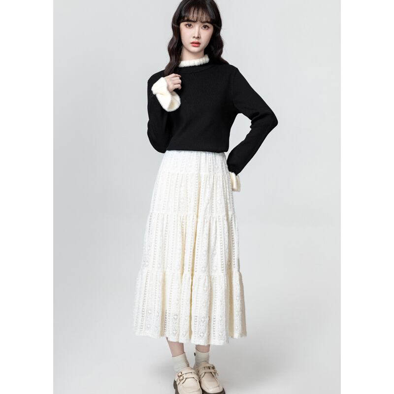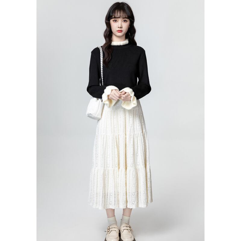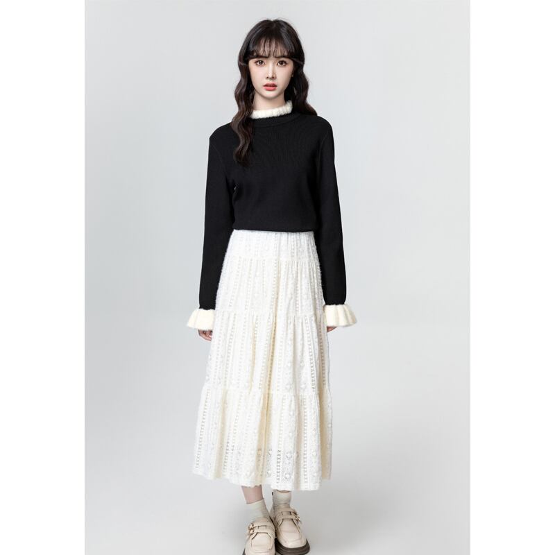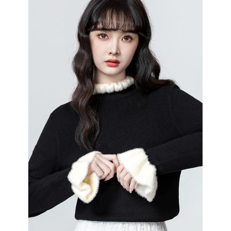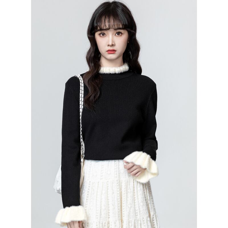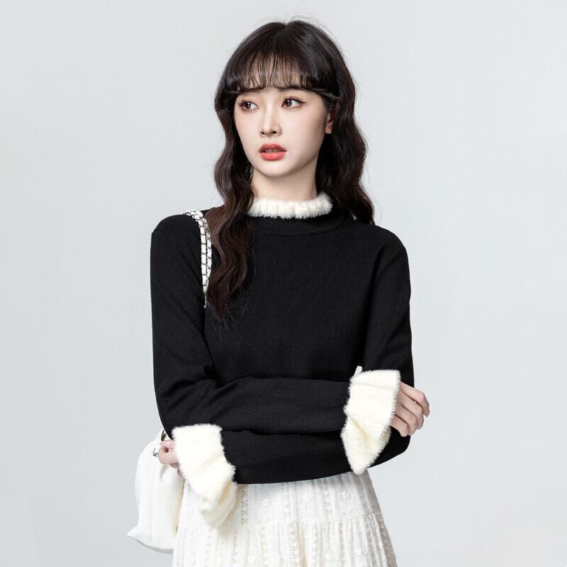 トップス ニットセーター 長袖 スピーカースリーブ 気質満点 配色 S M L