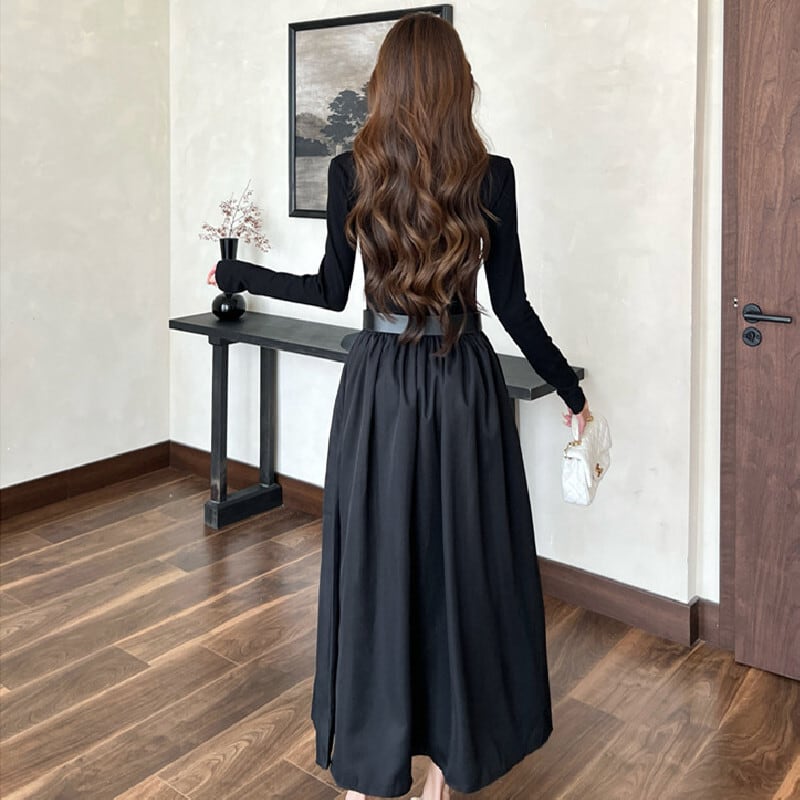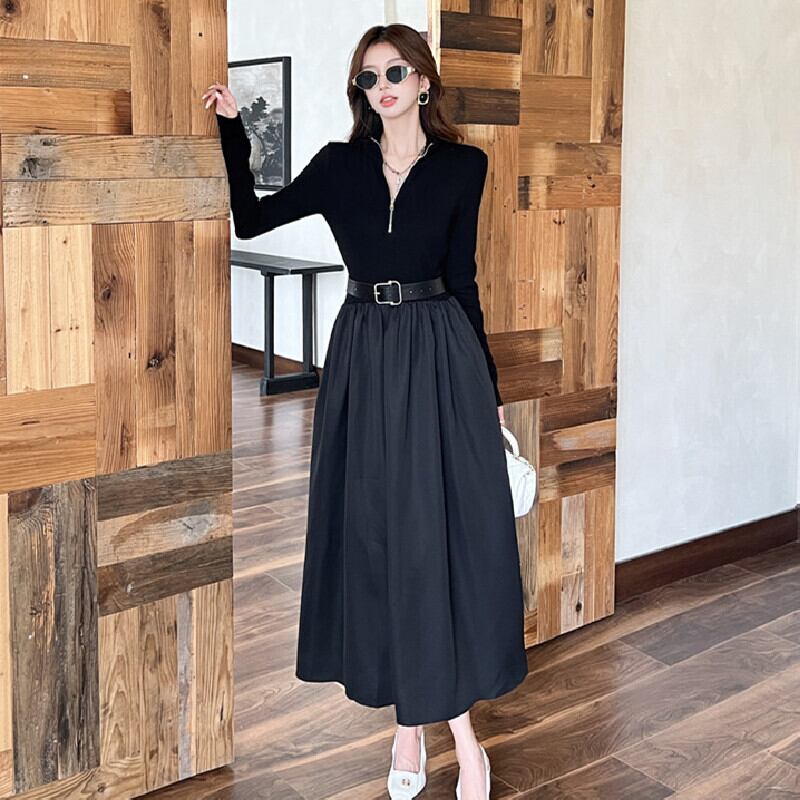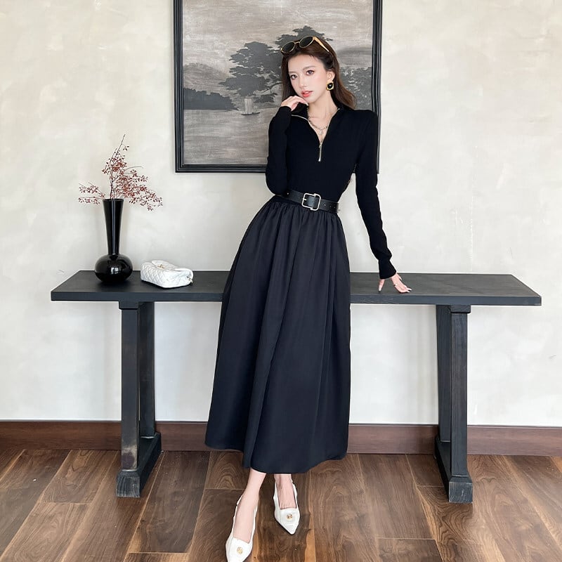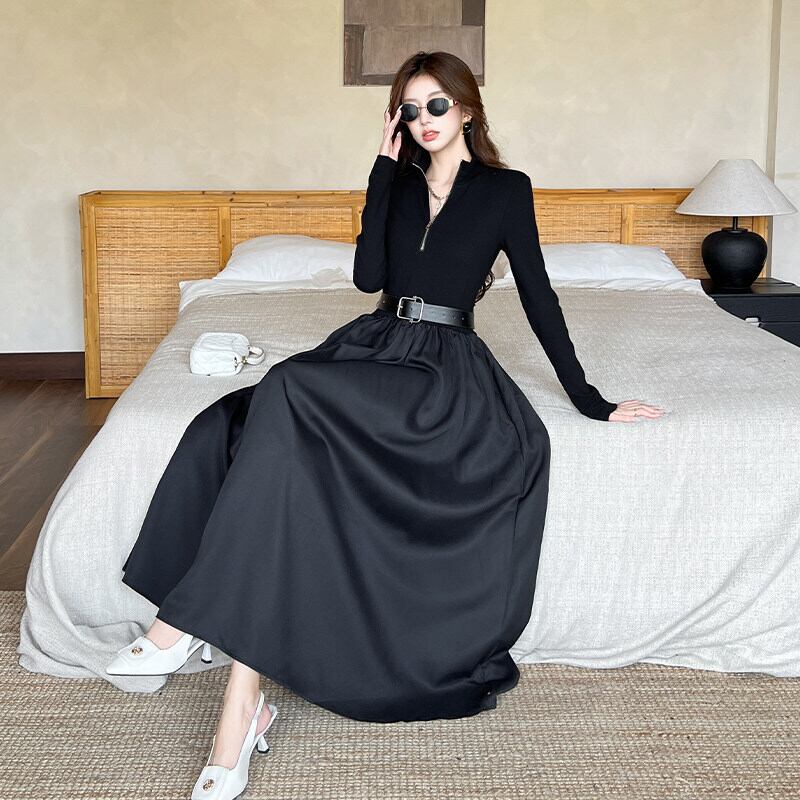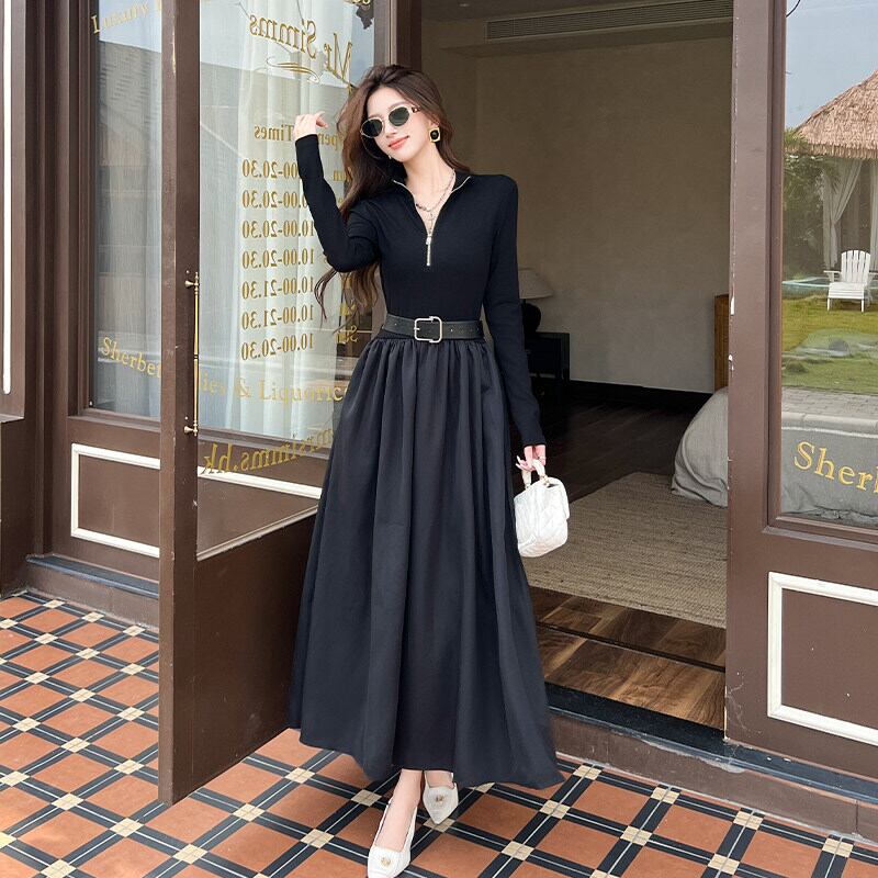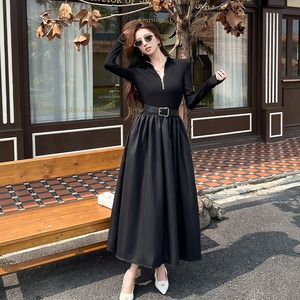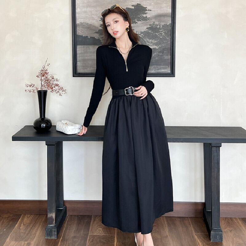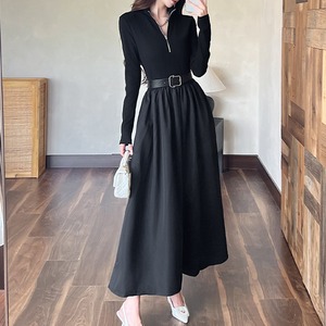 【CHERRYシリーズ】ワンピース 無地 ジッパー ファッション ブラック S M L