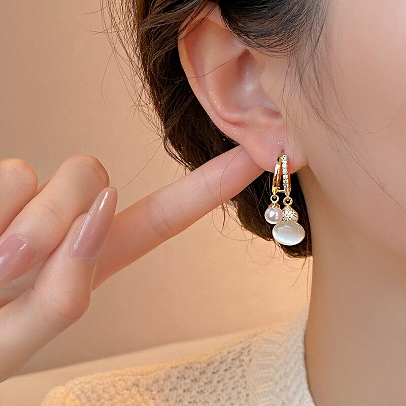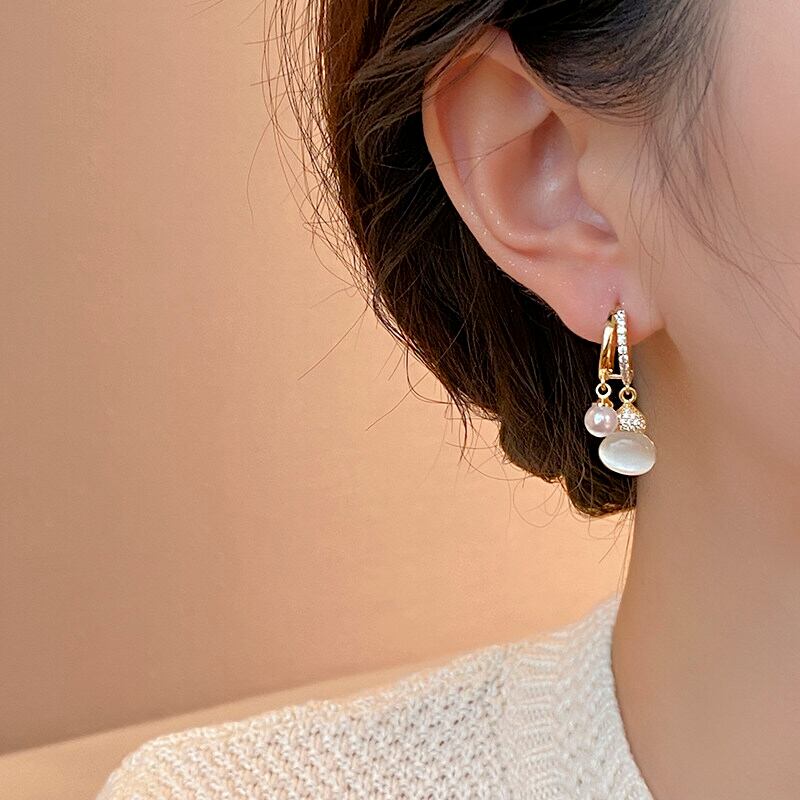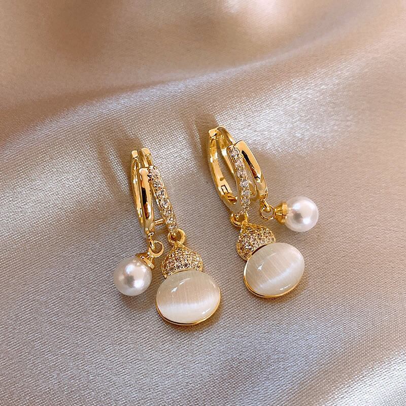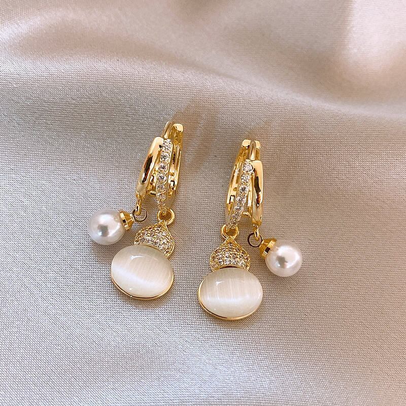 アクセサリー ピアス レトロなデザイン キャッツアイ石 ゴールデン色