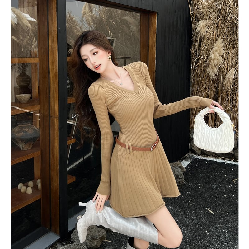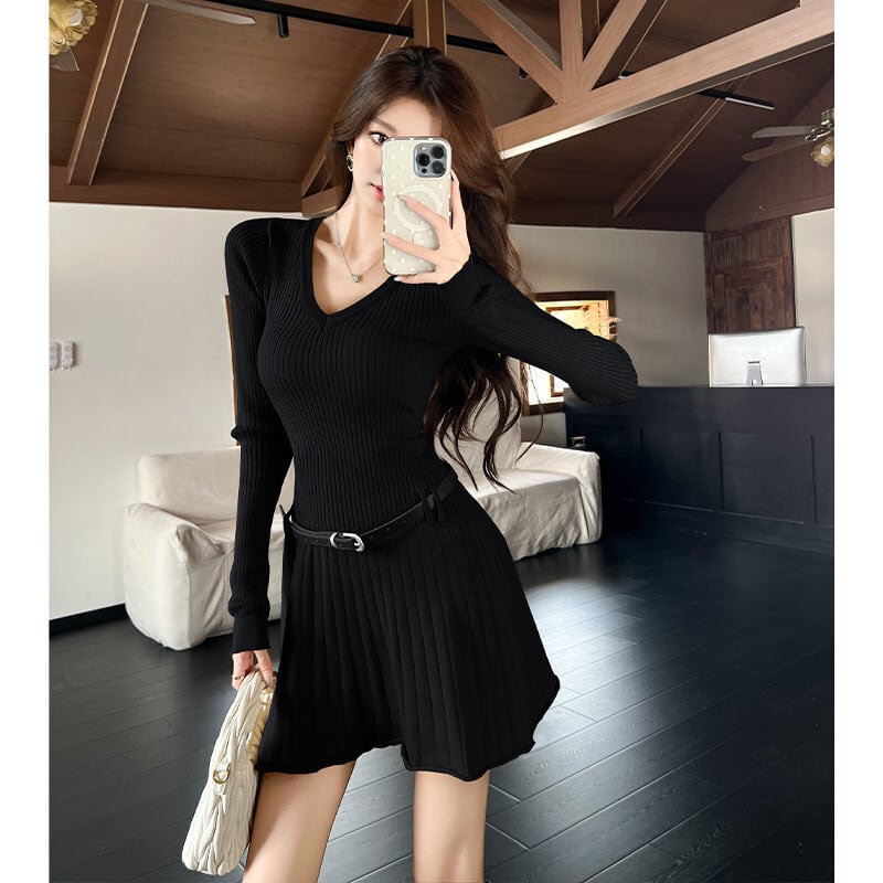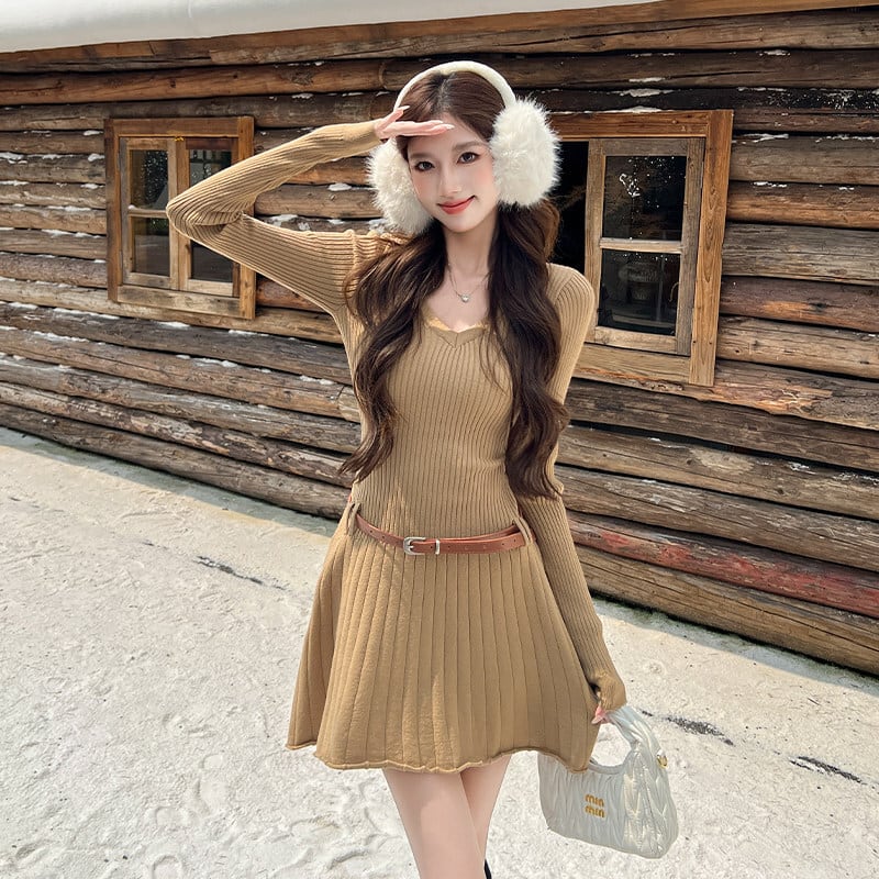 【CHERRYシリーズ】ワンピース ニット Vネック 気質溢れる ブラウン ブラック S M L