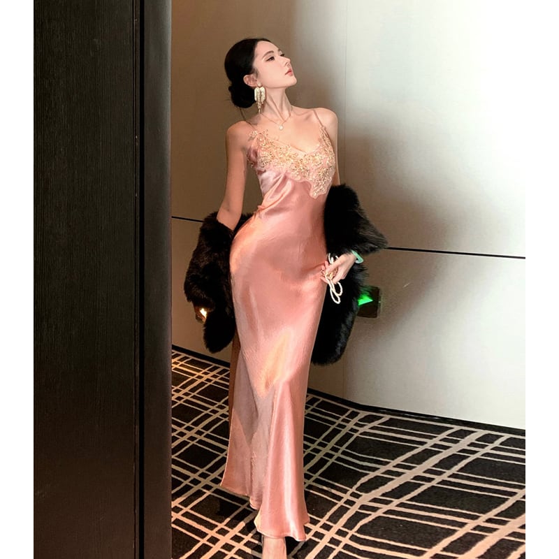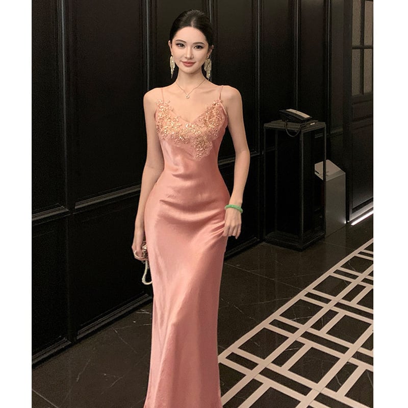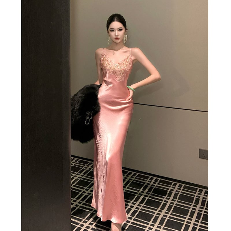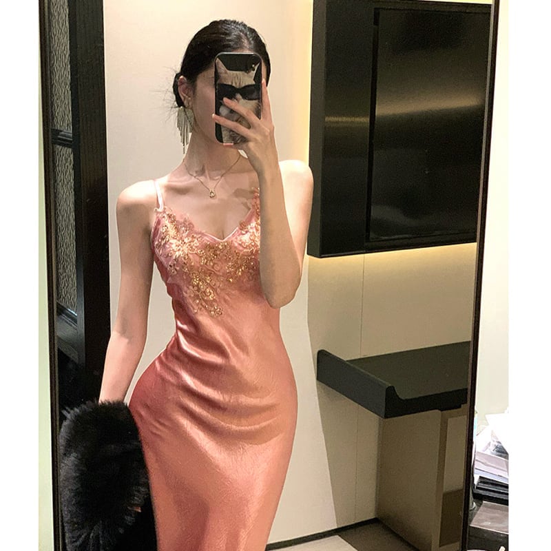 ストラップドレス ボディコン 美人度アップ 立体アプリケ S M L