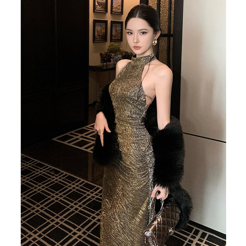 ワンピース ノースリーブ デザイン感 飲み会 バックリボン S M L