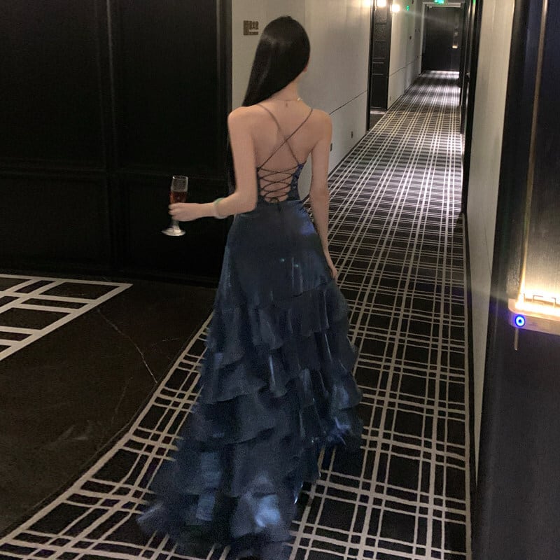 パーティードレス ペプラム スリット 目を奪われる ティアードドレス S M L