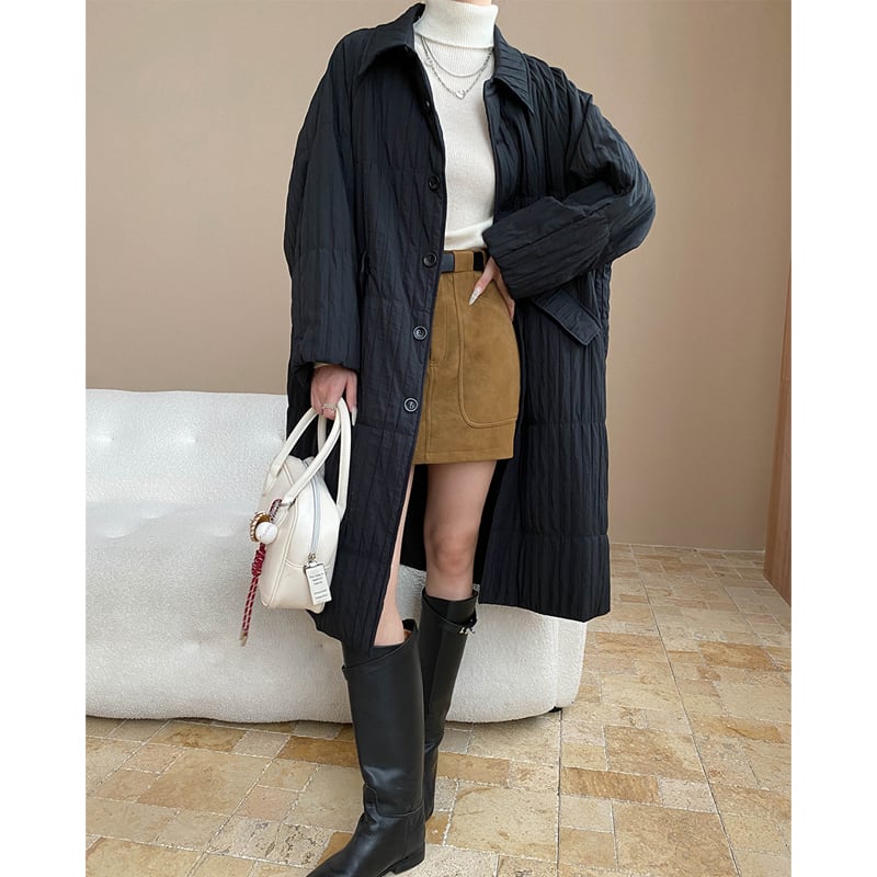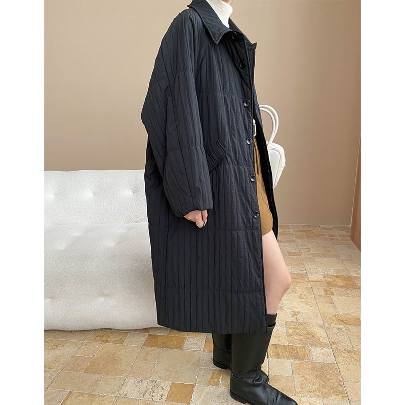 シャッキリシルエット 縦キルティング ボリュームカラー ブラック ライトダウンコート