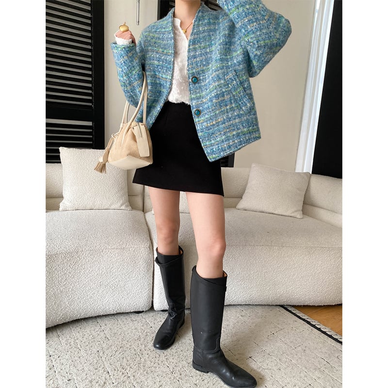 フレンチシック マルチカラー ハイゲージツイード テーラードジャケット