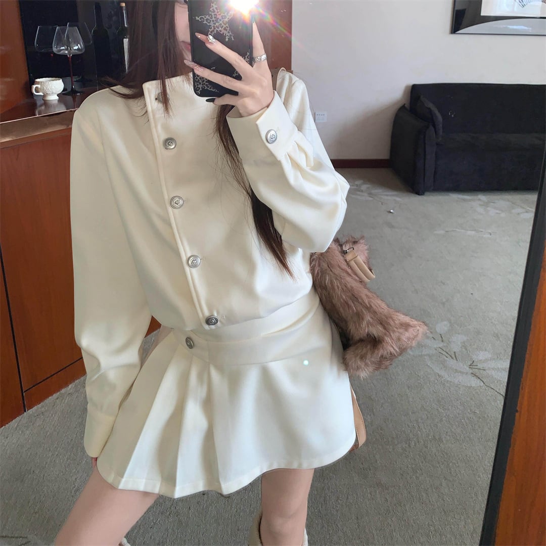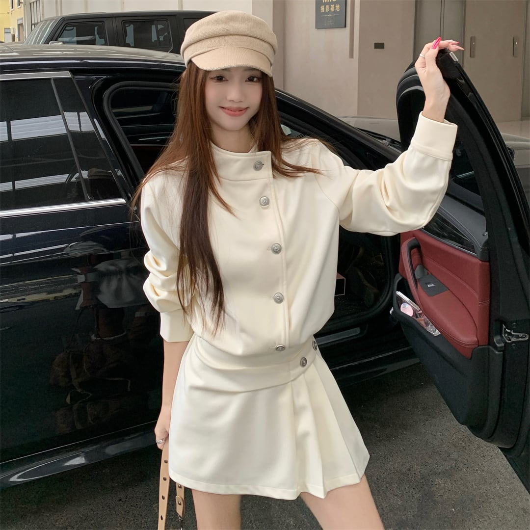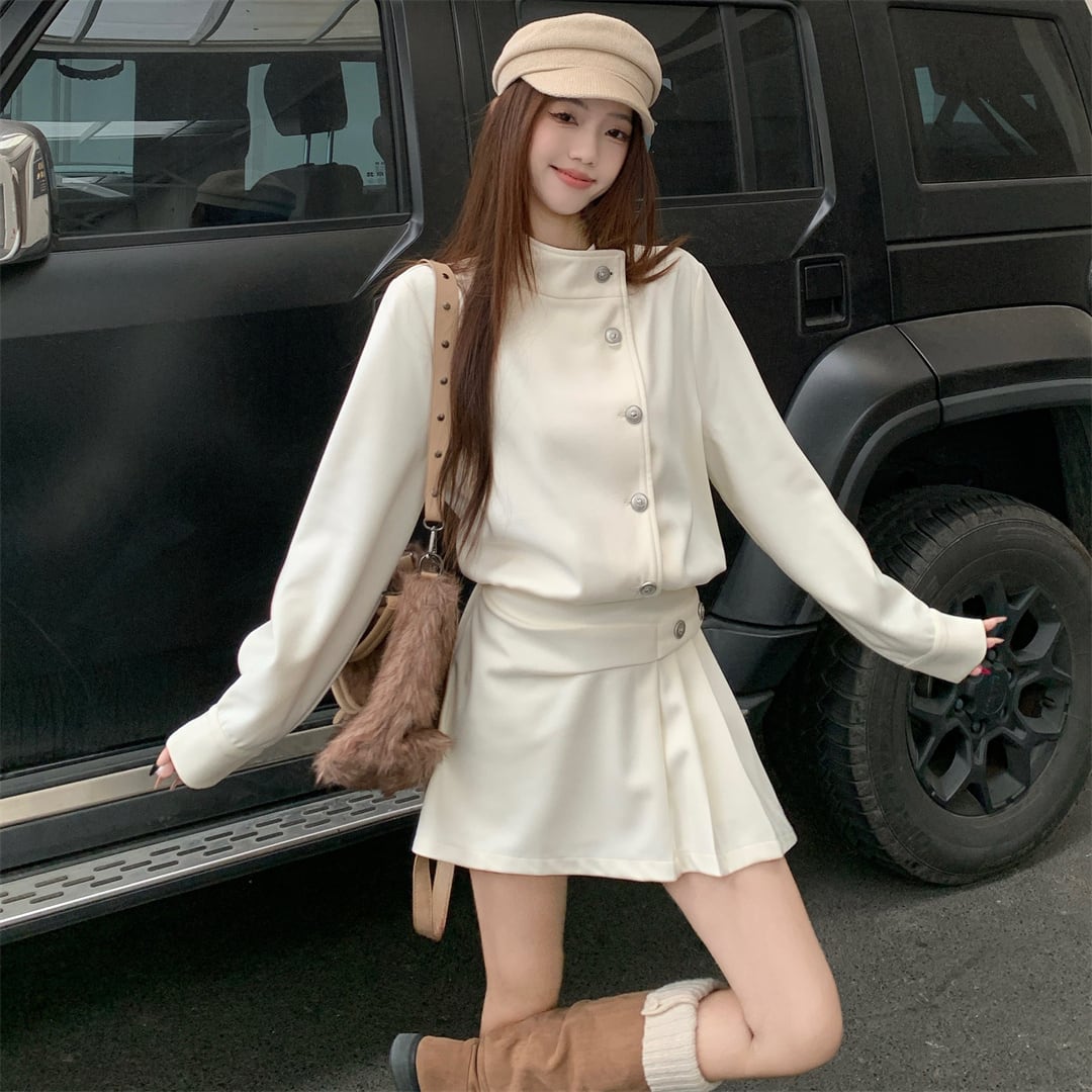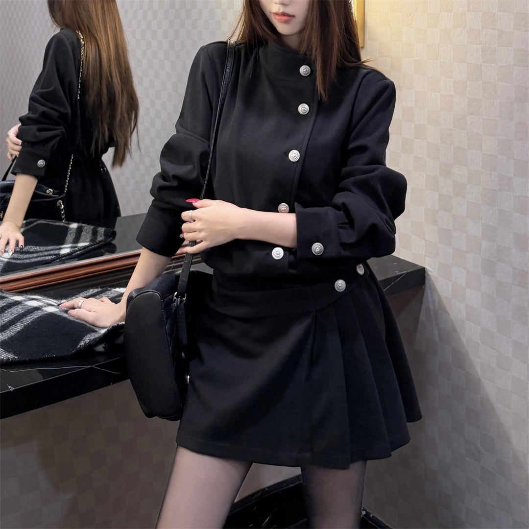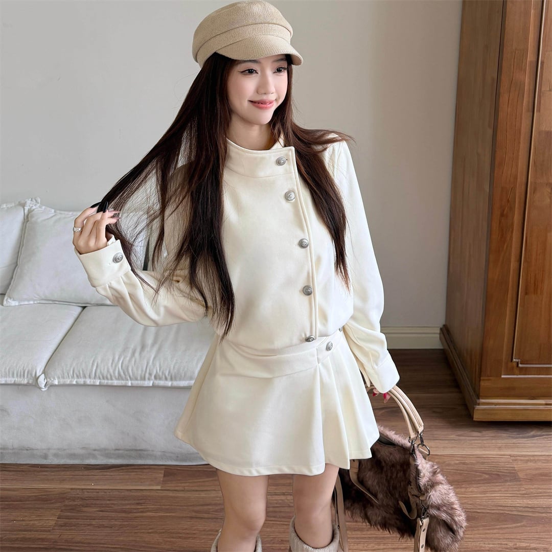 ワンピース シンプル 無地 スタンドカラー ホワイト ブラック S M L