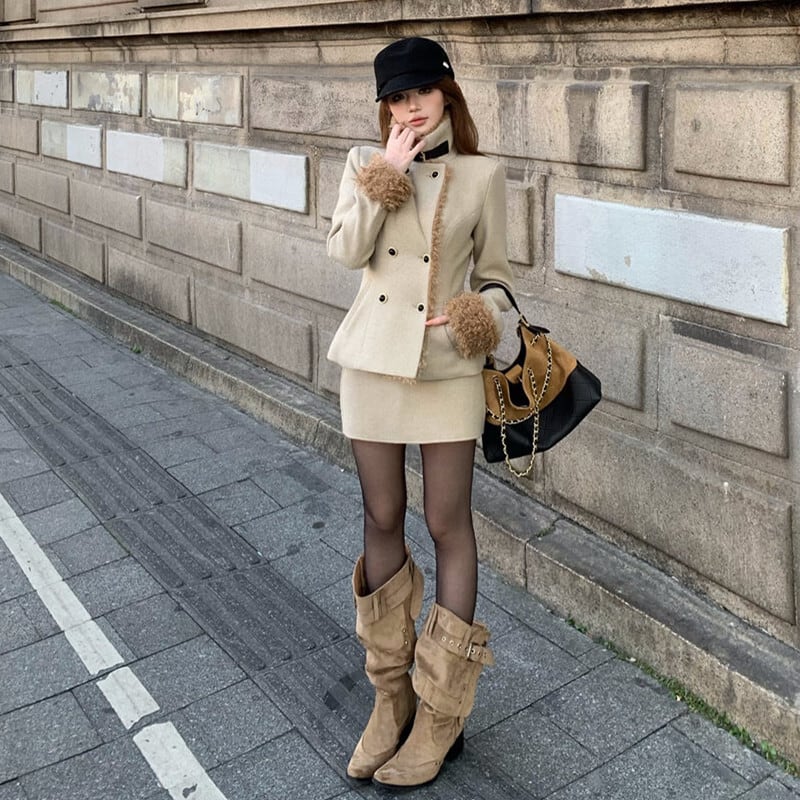 セットアップ ダブルブレスト ファースタッチミックス アウター +シルエットスカート