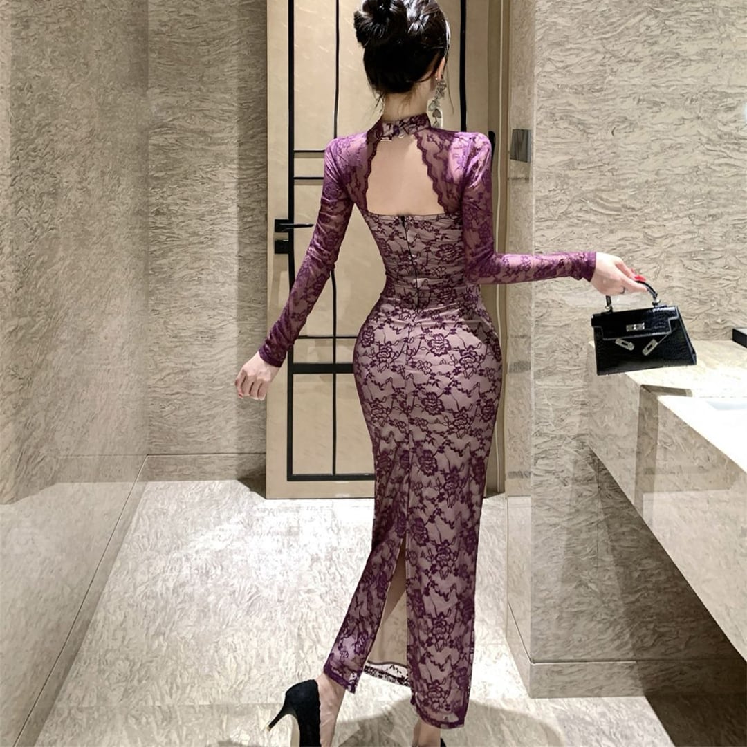 ✩売れ筋No.3✩ワンピース レース 透かし彫り 魅せる 切り替え パープル アプリコット S M L